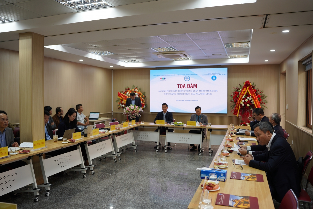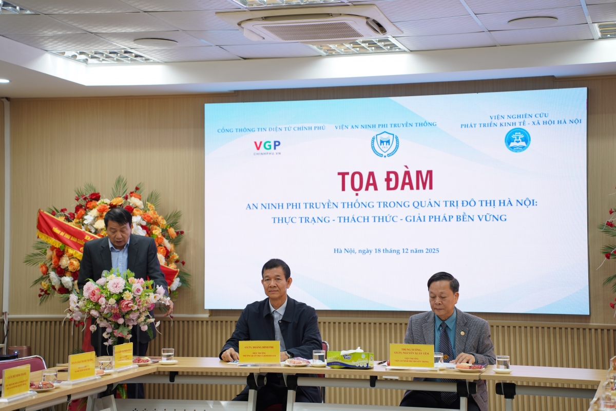 Phát biểu tại tọa đàm, GS.TS. Trung tướng Trần Vi Dân, Phó Tổng Thư ký Hội đồng Lý luận Trung ương cho biết, Chính phủ đã ban hành và triển khai chiến lược tổng thể ứng phó với các thách thức an ninh phi truyền thống, một cách tiếp cận tích hợp hiếm có và sẽ tiếp tục được hoàn thiện trong thực tiễn. Nhấn mạnh Hà Nội là địa bàn trọng điểm, gắn chặt với an ninh quốc gia- song Thủ đô hiện đang đối mặt hai nhóm thách thức chính: các nguy cơ từ tự nhiên như thiên tai, môi trường, dịch bệnh; và các thách thức do con người tạo ra như tội phạm, rủi ro an ninh - trật tự trong bối cảnh đô thị lớn. Vì vậy, việc quản trị các thách thức này cần cách tiếp cận tổng thể, hệ thống và dài hạn, đặt trong khuôn khổ chiến lược chung, thống nhất.