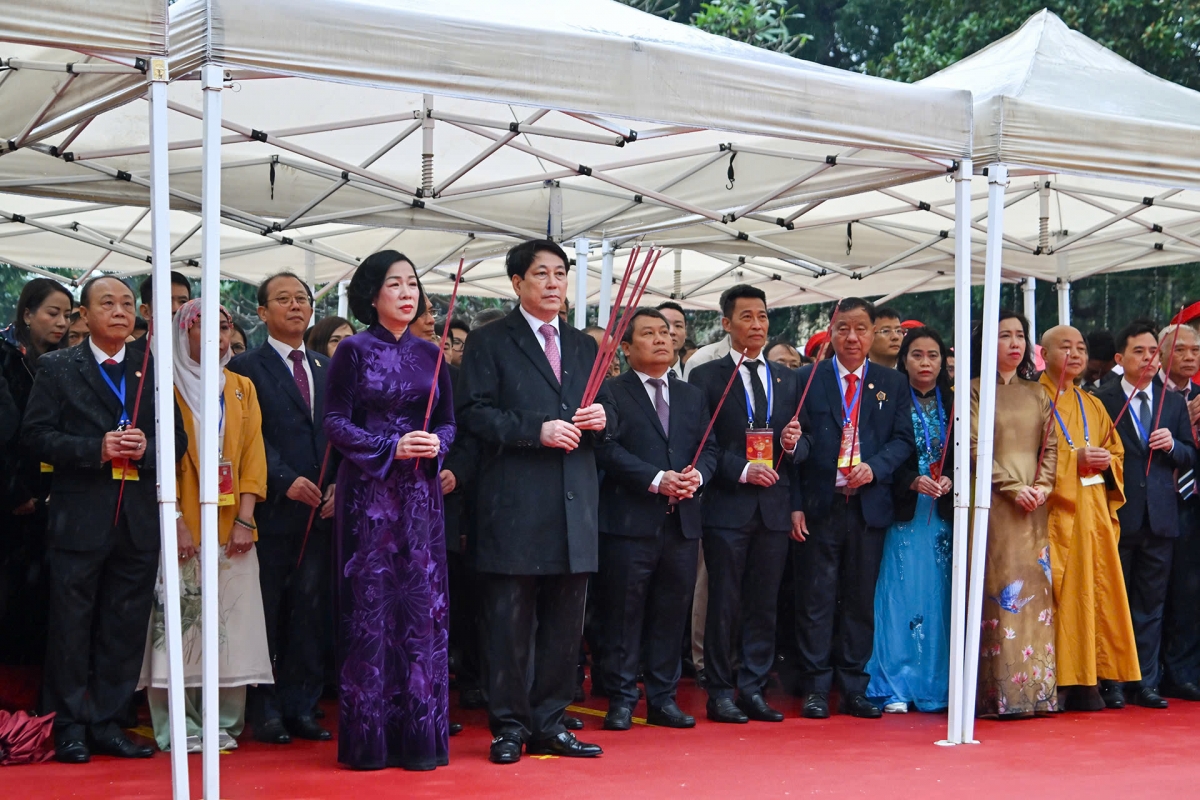Trong không khí linh thiêng và trang nghiêm, Chủ tịch nước Lương Cường và Phu nhân cùng các đại biểu, kiều bào đã thành kính dâng hương tưởng nhớ công ơn của đức Lý Thái Tổ và các vị tiên hiền, tiên liệt, các vị liệt tổ, liệt tông đã xây dựng và bảo vệ Thăng Long-Hà Nội nghìn năm văn hiến, gìn giữ non sông gấm vóc Việt Nam anh hùng, bồi đắp những giá trị văn hóa, lịch sử truyền thống vô cùng quý giá cho Thủ đô và đất nước mãi trường tồn; đồng thời, bày tỏ lòng thành kính cầu cho quốc thái dân an, đất nước vững tin bước vào kỷ nguyên phát triển mới với nhiều thành công đột phá hơn nữa vì hòa bình, độc lập, dân chủ, giàu mạnh, phồn vinh, văn minh, hạnh phúc; cũng như cẩn cáo với các bậc tiền nhân sự trở về quê mẹ của bà con Việt kiều từ khắp nơi trên thế giới.