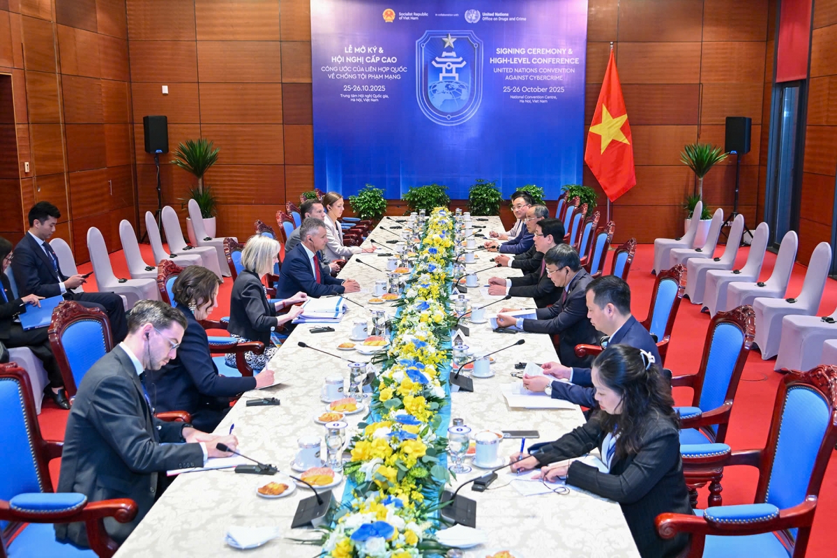 Đồng Bộ trưởng Matt Thistlethwaite đánh giá cao công tác tổ chức của Việt Nam và chúc mừng Việt Nam đã đăng cai, tổ chức thành công Công ước quan trọng của Liên hợp quốc trong lĩnh vực phòng chống tội phạm mạng. Chúc mừng những thành tựu Việt Nam đạt được, Đồng Bộ trương nhấn mạnh Việt Nam đang trở thành một điểm sáng về phát triển kinh tế, xã hội, phát triển hạ tầng và giáo dục. Nhân dịp này, Đồng Bộ trưởng một lần nữa gửi lời hỏi thăm đến người dân Việt Nam tại các vùng chịu thiệt hại của bão lũ vừa qua và chia sẻ, Chính phủ và nhân dân Australia luôn sẵn sàng đồng hành, hỗ trợ nhân dân Việt Nam.
