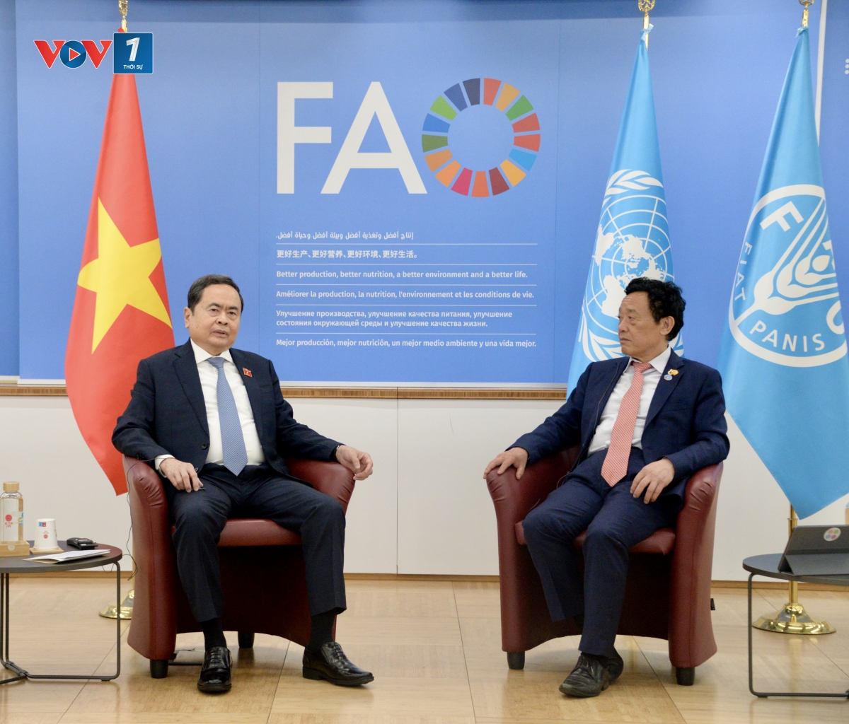 Tổng Giám đốc FAO khẳng định FAO luôn coi Việt Nam là đối tác quan trọng trong khu vực, đánh giá cao vai trò lãnh đạo của Việt Nam trong lĩnh vực nông nghiệp, hoan nghênh mô hình hợp tác ba bên ở châu Phi và Chương trình quốc gia mỗi xã một sản phẩm ở Việt Nam; đồng thời chia sẻ quan tâm của Chủ tịch Quốc hội về vấn đề bệnh dịch, cũng là quan tâm của FAO hiện nay, mong Việt Nam sẽ tiếp tục đồng hành cùng FAO trong các nỗ lực này. Ông bày tỏ sẵn sàng tiếp tục thúc đẩy hợp tác với Việt Nam trong các lĩnh vực ưu tiên như chuyển đổi hệ thống lương thực, thực phẩm bền vững, nông nghiệp xanh và thích ứng với biến đổi khí hậu.