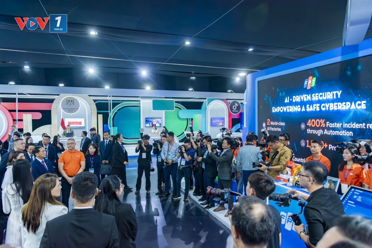 Tại Triển lãm trong khuôn khổ Lễ mở ký Công ước Hà Nội, FPT giới thiệu các giải pháp bảo mật ứng dụng AI đã được giải thưởng tại khu vực, góp phần cùng quốc gia, tổ chức, doanh nghiệp kiến tạo không gian mạng an toàn, tự chủ và bền vững. 08 nền tảng, giải pháp, sản phẩm, dịch vụ tiêu biểu được FPT giới thiệu tại Triển lãm gồm: QaiDora Vision và FPT Camera AI – Nền tảng giám sát an ninh ứng dụng trí tuệ nhân tạo; NightWolf SecureOne - Giải pháp An ninh mạng tinh gọn cho doanh nghiệp hiện đại; Dịch vụ Tư vấn An toàn thông tin; Dịch vụ Đánh giá & Kiểm thử An ninh; Dịch vụ Giám sát & Vận hành An ninh mạng; Dòng chip quản lý nguồn; AI trong chăm sóc sức khoẻ từ xa.