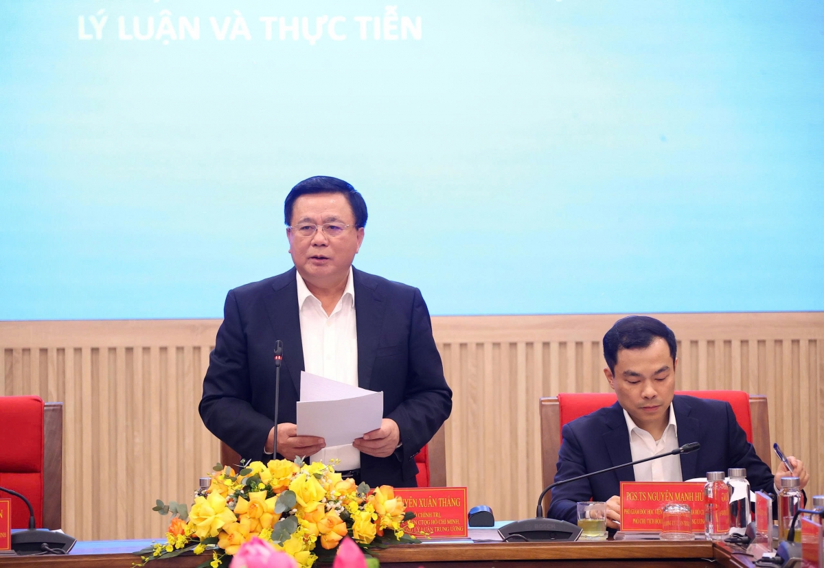 GS.TS Nguyễn Xuân Thắng, Ủy viên Bộ chính trị, Giám đốc Học viện Chính trị quốc gia Hồ Chí Minh, Chủ tịch Hội đồng lý luận Trung ương; PGS,TS Đoàn Minh Huấn, Ủy viên Trung ương Đảng, Phó Bí thư thường trực Đảng ủy, Phó Giám đốc thường trực Học viện Chính trị quốc gia Hồ Chí Minh; PGS,TS Nguyễn Mạnh Hùng, Phó Giám đốc Học viện Chính trị quốc gia Hồ Chí Minh, Phó chủ tịch Hội đồng Lý luận Trung ương chủ trì hội thảo.