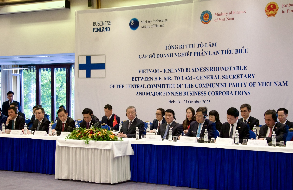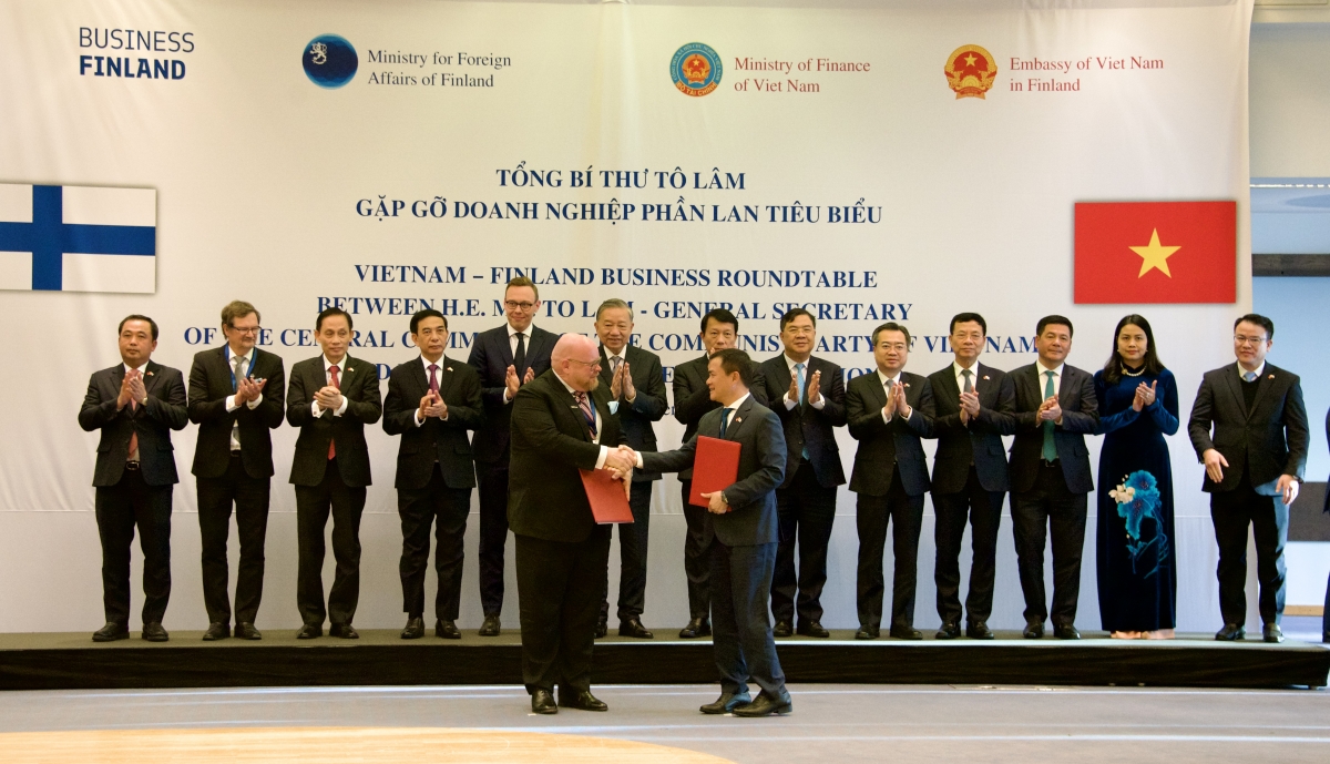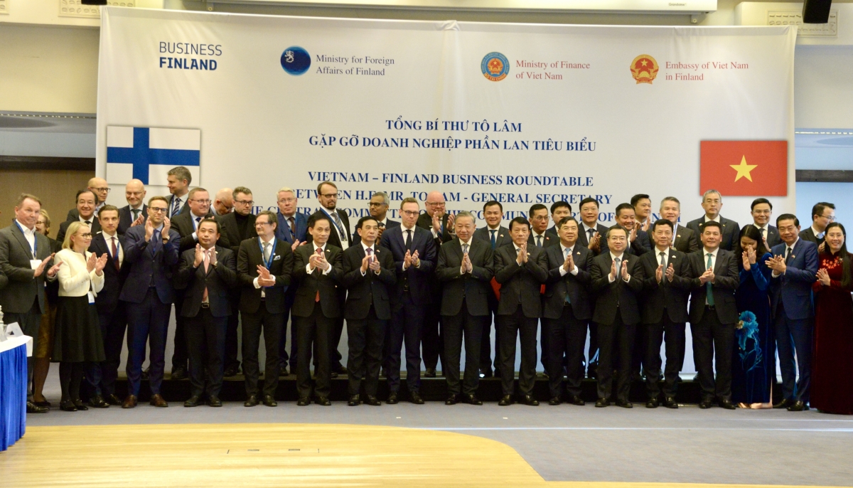 Sau khi lắng nghe những ý kiến đầy tâm huyết từ đại diện các doanh nghiệp hàng đầu Phần Lan, Tổng Bí thư bày tỏ vô cùng phấn khởi và đánh giá cao tinh thần hợp tác, thiện chí, tầm nhìn chiến lược và niềm tin mạnh mẽ vào triển vọng phát triển quan hệ Việt Nam – Phần Lan của các doanh nghiệp Phần Lan: "Nói là phấn khởi vì có 3 khía cạnh, thứ nhất là các bạn có lẽ là cập nhật rất hiểu Việt Nam chúng tôi; cái thứ hai nữa là rất mừng và chúc mừng những thành công các doanh nghiệp Phần Lan đã làm ăn ở Việt Nam. Tôi nghĩ không phải chỉ 16 doanh nghiệp có mặt ở đây mà nhiều hơn nữa nhiều các chương trình, những dự án không những phát triển kinh tế, đời sống sức khỏe cho nhân dân mà nó còn đấy là sự lòng nhân ái, sự văn hóa ở đỉnh cao trong quan hệ 2 nước chúng ta. Và điều mừng thứ ba nữa mà tôi cảm nhận được là tất cả các doanh nghiệp đây đều muốn tiếp tục phát triển Việt Nam. Chúng tôi hoan nghênh và khuyến khích các doanh nghiệp Phần Lan đầu tư lâu dài, bền vững, chuyển giao công nghệ tiên tiến và hợp tác nghiên cứu phát triển, tham gia vào hệ sinh thái độ buổi sáng tạo Việt Nam, trong đó Việt Nam ưu tiên một số lĩnh vực về khoa công nghệ đổi mới sáng tạo, chuyển đổi số, tập trung phát triển các ngành công nghiệp nền tảng công nghiệp mũi nhọn, công nghiệp mới nổi. Cái thứ hai nữa là hạ tầng năng lượng, giao thông, xây dựng triển khai công nghiệp ứng dụng năng lượng nguyên tử, năng lượng xanh, năng lượng sạch, không gian vũ trụ, lượng tử. Thứ ba là kinh tế biển, phát triển dịch vụ logistic cụm, kinh tế biển đa ngành gắn với xây dựng các trung tâm kinh tế biển, phát triển đội tàu vận tải biển tham gia sâu vào các chuỗi cung ứng vận tải, xây dựng các cảng biển thông minh.”