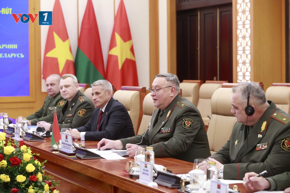 *** Sau hội đàm, Đại tướng Phan Văn Giang, Ủy viên Bộ Chính trị, Phó bí thư Quân ủy Trung ương, Bộ trưởng Bộ Quốc phòng tiếp xã giao Thiếu tướng Pa-ven Mu-ra-vây-cô, Tổng Tham mưu trưởng các Lực lượng vũ trang Belarus, Thứ trưởng thứ nhất Bộ Quốc phòng Belarus.