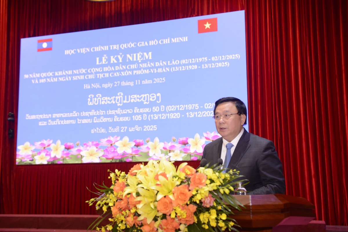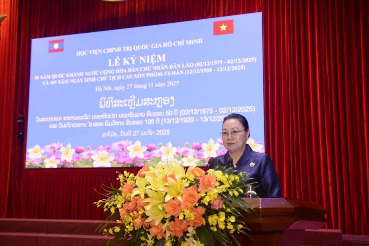 Phát biểu tại Lễ kỷ niệm, đồng chí Nguyễn Xuân Thắng, Giám đốc Học viện Chính trị quốc gia Hồ Chí Minh gửi tới Lãnh đạo Đảng, Nhà nước và Nhân dân Lào anh em lời chúc mừng tốt đẹp nhất và cho biết: Lễ kỷ niệm được tổ chức hòa vào bầu không khí hai Đảng, hai Nhà nước năm nay cùng triển khai một chuỗi các hoạt động kỷ niệm những ngày đại lễ đặc biệt. Việt Nam kỷ niệm 95 năm ngày thành lập Đảng, 135 năm ngày sinh của Chủ tịch Hồ Chí Minh, 80 năm Quốc Khánh 2/9, 50 năm giải phóng hoàn toàn miền Nam, thống nhất đất nước; đang chuẩn bị tích cực về mọi mặt tiến tới Đại hội XIV của Đảng Cộng sản Việt Nam; trong khi đó, nước bạn Lào kỷ niệm 70 năm thành lập Đảng Nhân dân Cách mạng Lào, 50 năm Quốc khánh nước Cộng hòa Dân chủ Nhân dân Lào, 105 năm ngày sinh Chủ tịch Cay-xỏn Phôm-vi-hản và hướng tới Đại hội lần thứ XII của Đảng Nhân dân Cách mạng Lào.