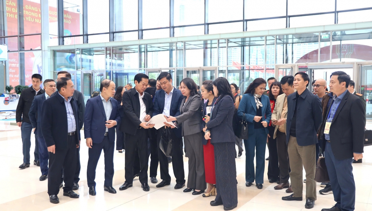 Tại đây, Phó Chủ tịch nước Võ Thị Ánh Xuân cùng đại diện các Tiểu ban của Đại hội, lãnh đạo một số bộ, ngành đã đi kiểm tra, rà soát thiết kế, trang trí tổng thể Đại hội; khu vực triển lãm giới thiệu các thành tựu kinh tế - xã hội nổi bật của đất nước sau 40 năm Đổi mới; khu vực hội trường chính và sân khấu - không gian trung tâm Đại hội...