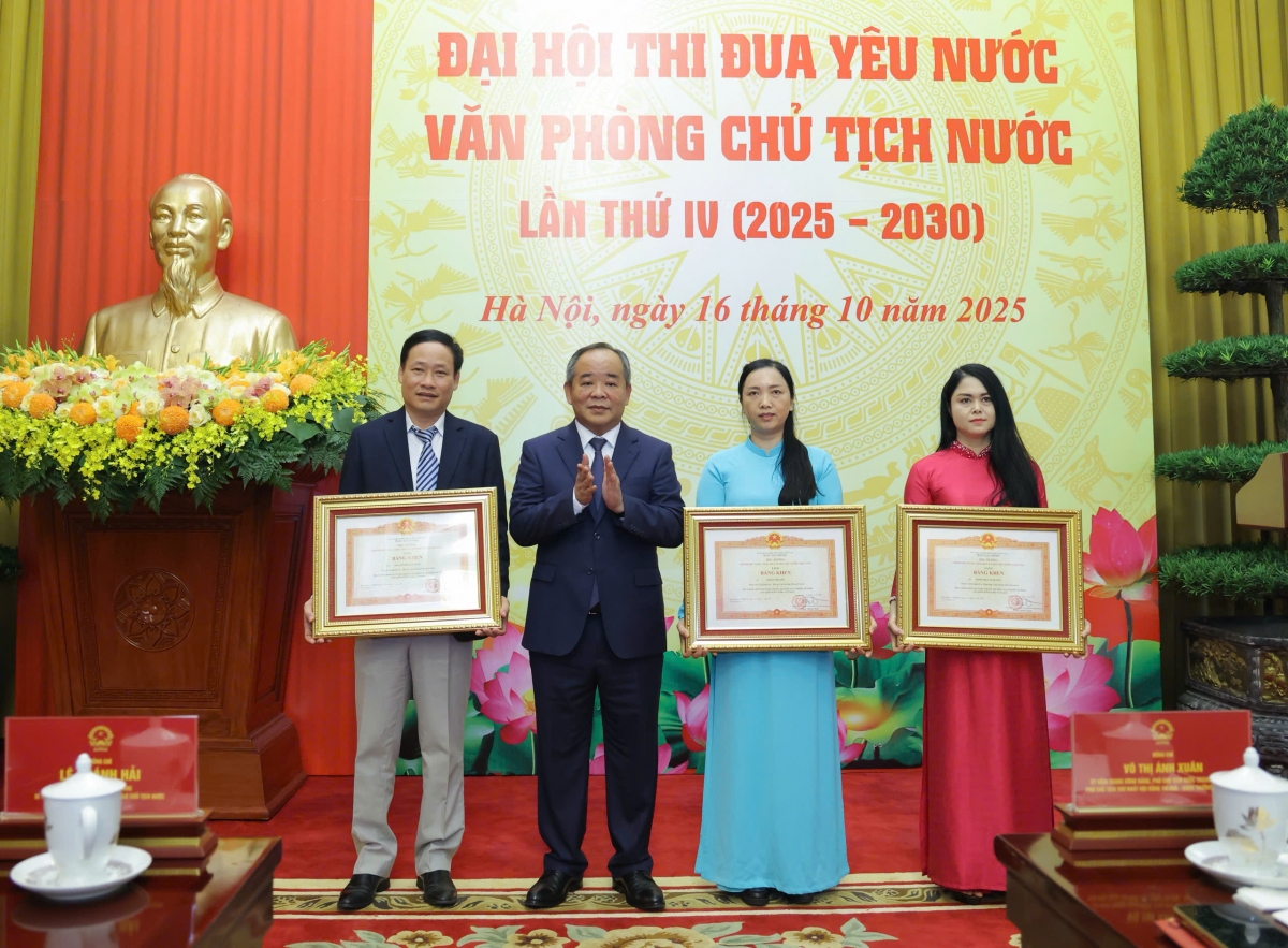 Dịp này, Phó Chủ tịch nước Võ Thị Ánh Xuân cùng lãnh đạo Văn phòng Chủ tịch nước đã trao Huân chương Lao động hạng Ban và bằng khen của Thủ tướng Chính phủ cho các tập thể, cá nhân có thành tích xuất sắc trong phong trào thi đua yêu nước giai đoạn 2020-2025 của Văn phòng Chủ tịch nước../.