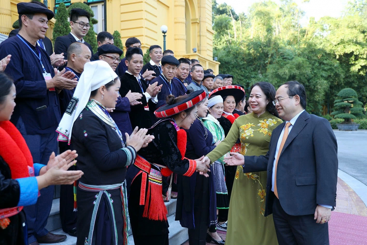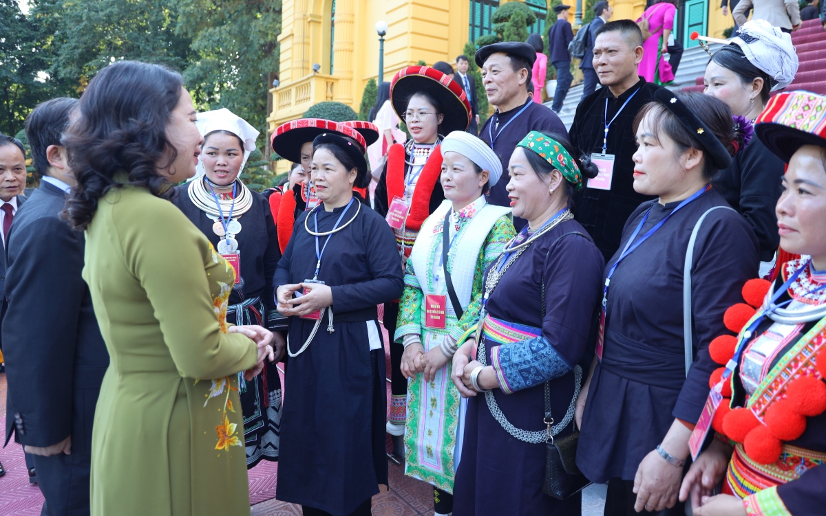 Phát biểu tại buổi gặp mặt, thay mặt lãnh đạo Đảng, Nhà nước, Phó Chủ tịch nước Võ Thị Ánh Xuân ghi nhận và đánh giá cao những nỗ lực, phấn đấu, kết quả trên mọi lĩnh vực mà Đảng bộ, chính quyền và nhân dân các dân tộc tỉnh Cao Bằng đã đạt được trong thời gian qua; biểu dương những đóng góp tích cực, hiệu quả của đồng bào dân tộc thiểu số trong xây dựng tỉnh Cao Bằng nói riêng cũng như trong công cuộc xây dựng và bảo vệ Tổ quốc nói chung. Biểu dương kết quả phát triển kinh tế-xã hội quan trọng tỉnh Cao Bằng đạt được trong thời gian qua, Phó Chủ tịch nước nhấn mạnh, với những chính sách của Đảng, Nhà nước và sự nỗ lực của cấp ủy, chính quyền địa phương, nhân dân các dân tộc Cao Bằng, các chính sách về dân tộc thiểu số, dân tộc miền núi đã được triển khai khá tốt và đồng bộ. Tỷ lệ hộ nghèo (theo tiêu chí mới) giảm bình quân trên 4%/năm, đời sống của nhân dân ngày càng nâng lên và tốt hơn, chung tay giữ gìn bản sắc văn hóa dân tộc. Lực lượng nòng cốt, cốt cán, có uy tín trong đồng bào dân tộc thiểu số luôn là cánh tay nối dài quan trọng của Đảng, Nhà nước để xây dựng quê hương.