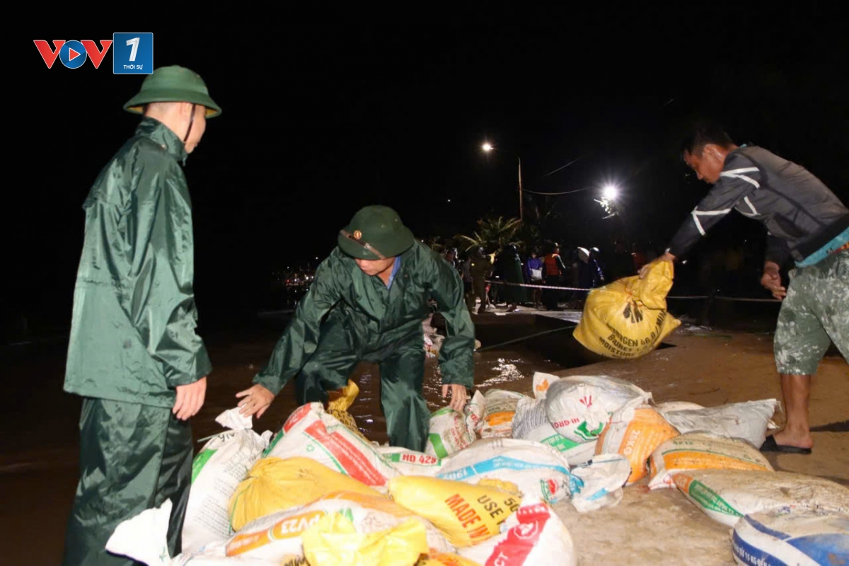 Trước tình hình đó, đêm qua 29/10, Sư đoàn 315 tiếp tục huy động gần 100 cán bộ, chiến sĩ cùng bà con nhân dân trắng đêm khẩn trương gia cố lại bờ kè đảm bảo an toàn cho nhân dân.