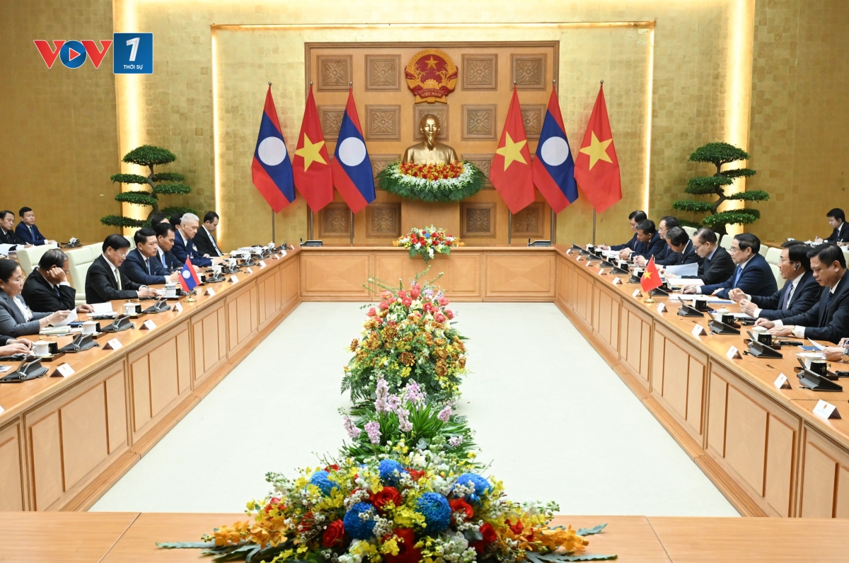 Thủ tướng Phạm Minh Chính nhiệt liệt chào mừng Tổng Bí thư, Chủ tịch nước Lào sang thăm Việt Nam và nhấn mạnh, chuyến thăm có ý nghĩa hết sức quan trọng diễn ra ngay sau khi hai bên tổ chức thành công Đại hội đại biểu toàn quốc nhiệm kỳ mới và hướng tới bầu cử Quốc hội và Hội đồng nhân dân các cấp; khẳng định quyết tâm của lãnh đạo hai nước trong việc giữ gìn và phát triển mối quan hệ đặc biệt Việt Nam - Lào.