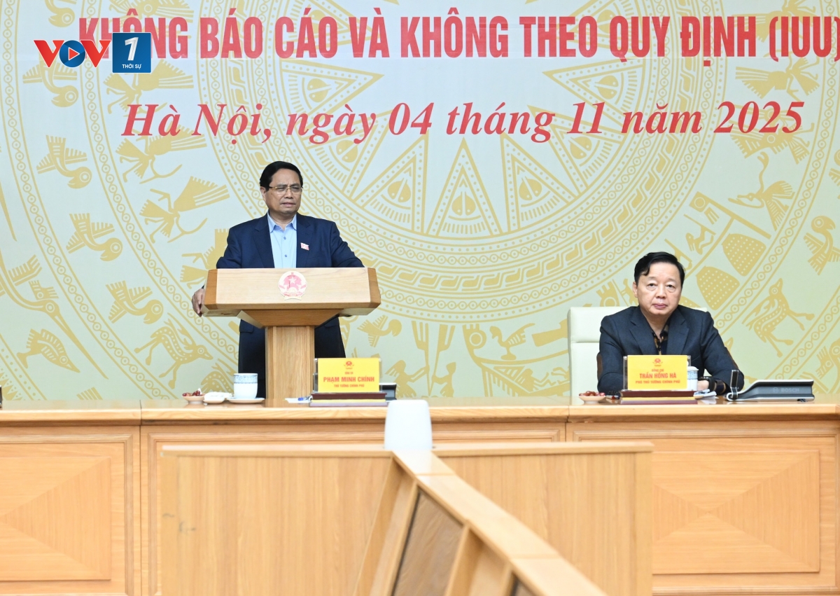 Đánh giá cao sự nỗ lực của các bộ, ngành, địa phương thực hiện các nhiệm vụ chức năng, quyền, theo đó đã hoàn thành 23/66 nhiệm vụ, đang triển khai 43 nhiệm vụ theo tiến độ; Bộ Nông nghiệp và Môi trường đã trình Chính phủ xem xét ban hành sửa đổi một số Nghị định trong đó có sửa đổi, bổ sung mức xử phạt vi phạm hành chính trong lĩnh vực thuỷ sản; trong tuần không phát sinh trường hợp tàu cá vi phạm vùng biển nước ngoài... Thủ tướng đánh giá tình hình xử lý vi phạm pháp luật liên quan IUU tiếp tục chuyển biến tích cực và yêu cầu tất cả các vi phạm phải xử lý hết các vụ vi phạm cho đến ngày 20/11; yêu cầu tỉnh An Giang phối hợp Bộ Công an khởi tố vụ việc tàu cá bị bắt giữ đầu năm 2025 vì chở các thiết bị định vị VMS.