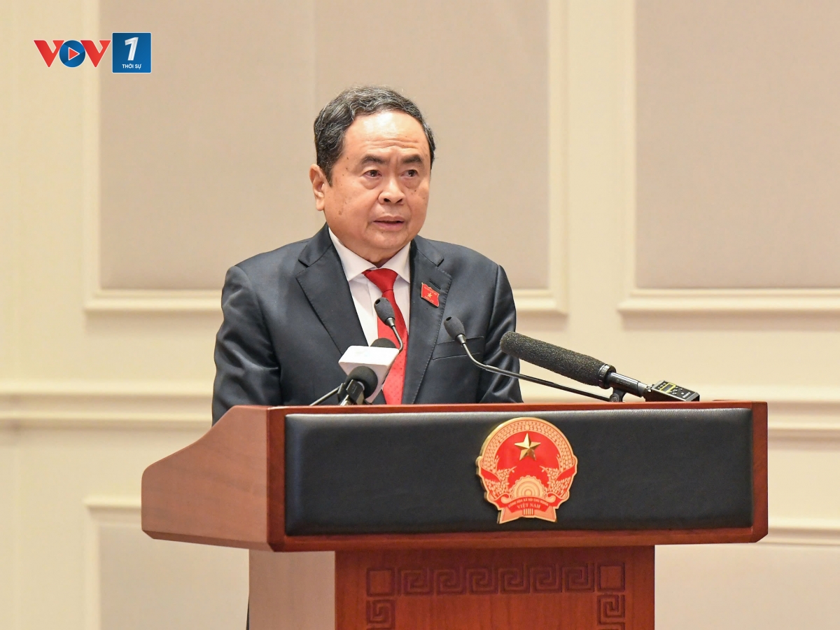 Thay mặt Ủy ban Thường vụ Quốc hội và các đại biểu Quốc hội, Chủ tịch Quốc hội Trần Thanh Mẫn trân trọng cảm ơn và nghiêm túc tiếp thu đầy đủ ý kiến chỉ đạo sâu sắc, toàn diện, có tính định hướng chiến lược của Tổng Bí thư, Chủ tịch nước Tô Lâm; nhấn mạnh, Quốc hội xác định rõ trọng tâm chỉ đạo và hành động: Quán triệt sâu sắc quan điểm phát triển bao trùm, không để ai bị bỏ lại phía sau, yêu cầu các cơ quan của Quốc hội khẩn trương thể chế hóa đầy đủ chủ trương của Đảng, bảo đảm mọi chính sách dân tộc phải hướng trực tiếp vào tạo sinh kế nâng cao đời sống nhân dân; khắc phục triệt để tình trạng chính sách ban hành đúng nhưng triển khai thực hiện hiệu quả thấp, chậm đi vào cuộc sống.