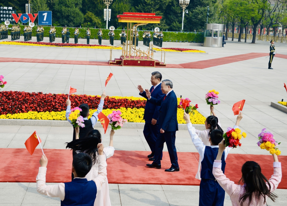 Đảng, Nhà nước Trung Quốc đã dành nghi lễ đón tiếp trang trọng nhất đối với Tổng Bí thư, Chủ tịch nước Tô Lâm cùng phu nhân và Đoàn đại biểu cấp cao nước ta. Tại Quảng trường Thiên An Môn ở Thủ đô Bắc Kinh 21 loạt phát đại bác được phía bạn bắn lên chào mừng Tổng Bí thư, Chủ tịch nước Tô Lâm đến Đại lễ Đường Nhân dân để bắt đầu lễ đón chính thức.