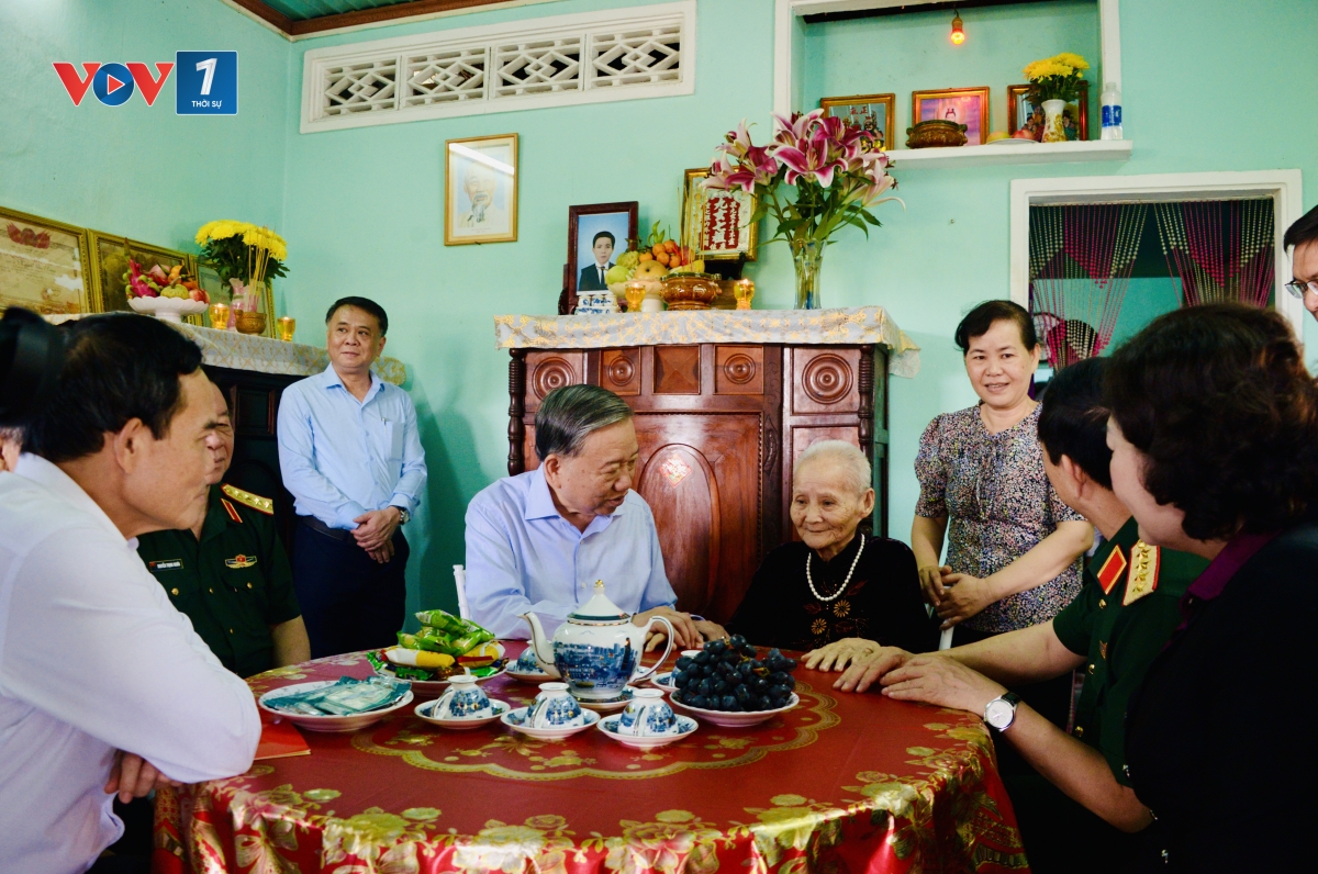 Tiếp đó tại Thành phố Hồ Chí Minh, Tổng Bí thư, Chủ tịch nước Tô Lâm đã tới thăm tặng quà mẹ Việt Nam Anh Hùng Huỳnh Thị Lơ, sinh năm 1937, chồng là liệt sỹ Phan Văn Rương hy sinh năm 1969, con là Liệt sỹ Phan Thanh Hùng, hy sinh ngày 09/03/1975.