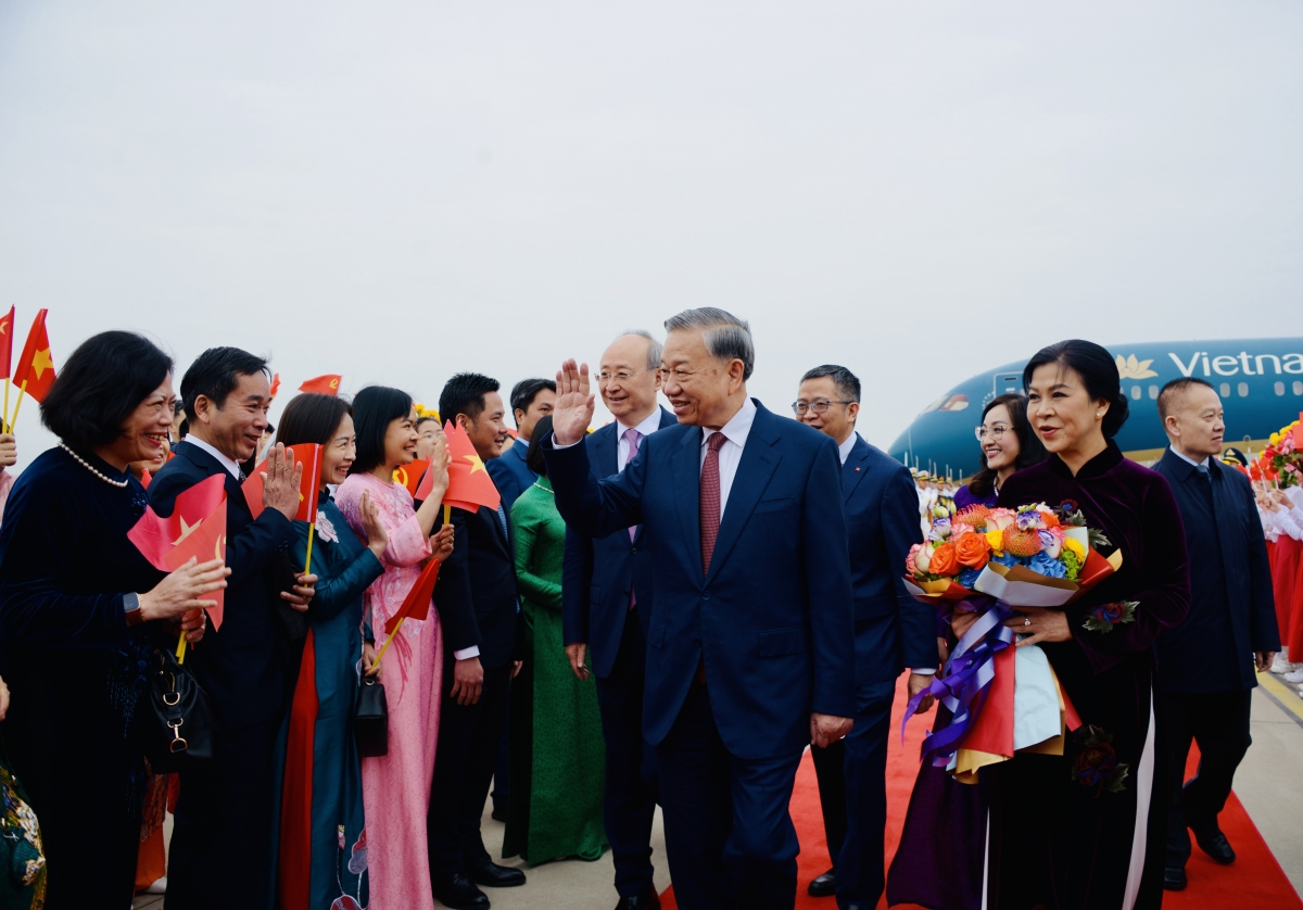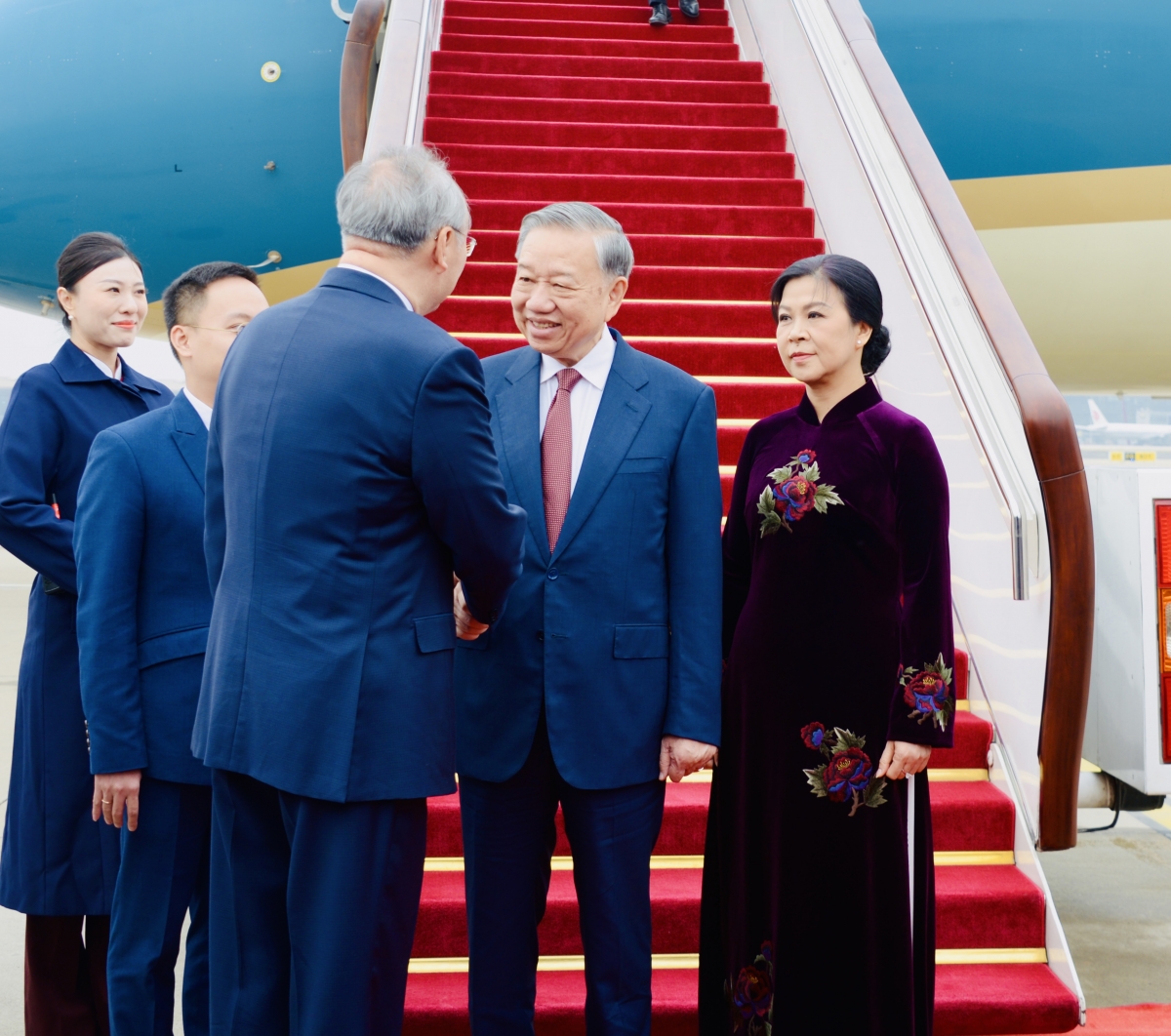 Chuyên cơ chở Tổng Bí thư, Chủ tịch nước Tô Lâm cùng Phu nhân và Đoàn đại biểu cấp cao nước ta đã hạ cánh xuống sân bay quốc tế Bắc Kinh, bắt đầu chuyến thăm cấp Nhà nước tới CHND Trung Hoa theo lời mời của Tổng Bí thư Ban Chấp hành Trung ương Đảng Cộng sản Trung Quốc, Chủ tịch nước CHND Trung Hoa Tập Cận Bình.