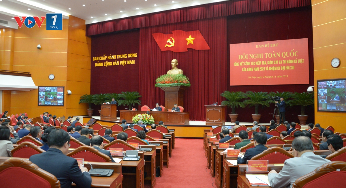 Sáng ngày 24/11 tại Trụ sở Trung ương Đảng, Ban Bí thư tổ chức hội nghị toàn quốc tổng kết công tác kiểm tra, giám sát, thi hành kỉ luật của Đảng năm 2025 và nhiệm kỳ Đại hội 13 của Đảng. Tổng Bí thư Tô Lâm tới dự và phát biểu chỉ đạo tại hội nghị, cùng dự có Chủ tịch nước Lương Cường, Thường trực Ban Bí thư Trần Cẩm Tú, các đồng chí Uỷ viên Bộ Chính trị, Bí thư Trung ương Đảng, Uỷ viên Trung ương Đảng, và lãnh đạo các Ban bộ ngành Trung ương, địa phương.