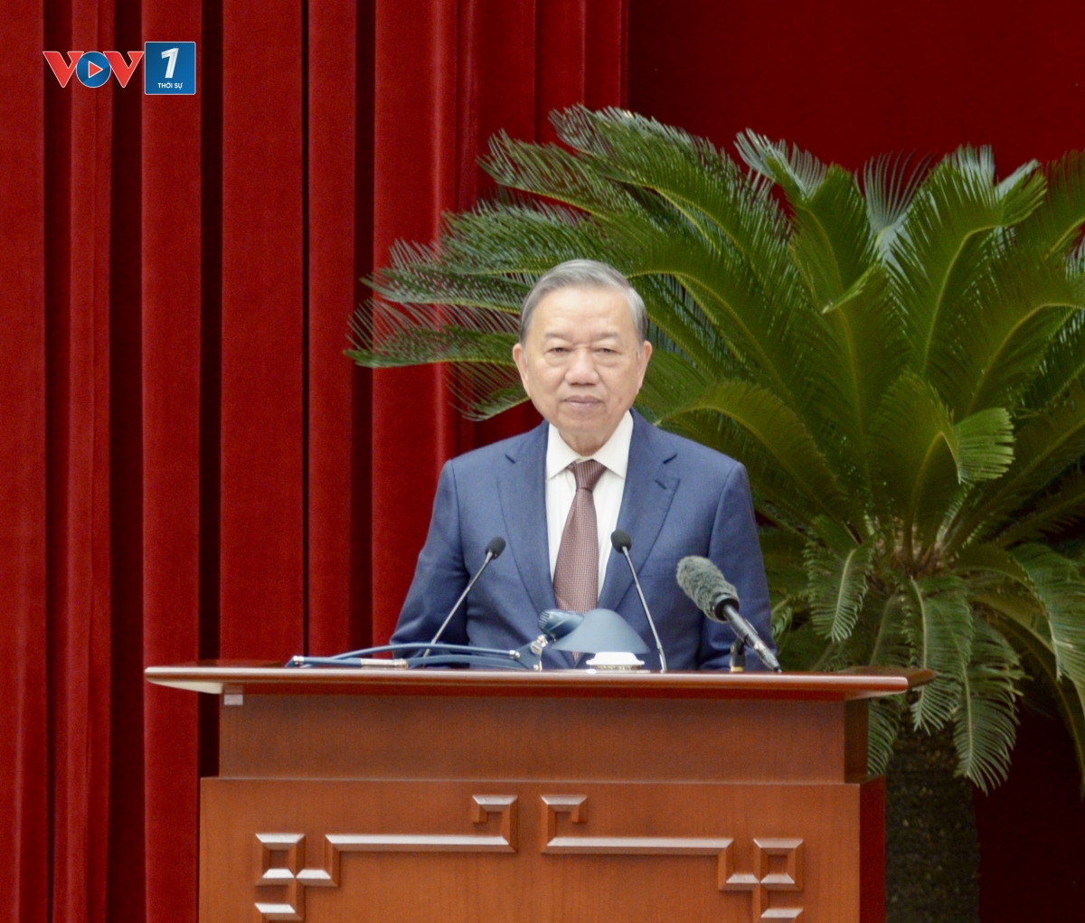 Sau khi thông tin khái quát về những thành tựu nổi bật của Đất nước trên tất cả các lĩnh vực, Tổng Bí thư cho biết, ngay sau Đại hội XIV một loạt nhiệm vụ trọng tâm trong công tác xây dựng Đảng sẽ được triển khai đồng bộ như sửa đổi, bổ sung và ban hành đồng bộ các hướng dẫn, quy định về thi hành Điều lệ Đảng và công tác kiểm tra, giám sát của Đảng; tiếp tục đổi mới mạnh mẽ công tác cán bộ theo hướng thật sự khách quan, công tâm, minh bạch; lựa chọn đúng người, giao đúng việc, lấy hiệu quả công việc, sự tín nhiệm của Nhân dân và kết quả thực tiễn làm thước đo chủ yếu, hay như triển khai các giải pháp tăng cường công tác phòng, chống tham nhũng, lãng phí, tiêu cực; chống suy thoái về tư tưởng chính trị, đạo đức, lối sống, những biểu hiện "tự diễn biến, tự chuyển hoá" trong nội bộ…”Đại hội XIV của Đảng xác định quyết tâm hiện thực hoá 2 mục tiêu 100 năm của đất nước bằng những quyết sách và hành động cụ thể, quyết liệt. Để nước ta trở thành nước phát triển, thu nhập cao vào năm 2045, chúng ta phải phấn đấu đạt tốc độ tăng trưởng liên tục ở mức 2 con số trong suốt giai đoạn sắp tới. Đây là mục tiêu vô cùng khó khăn, nhưng cũng là yêu cầu khách quan, đồng thời là thước đo bản lĩnh, ý chí và khát vọng phát triển của dân tộc. Chúng ta xác định tăng trưởng nhanh nhưng phải bền vững, trên nền tảng ổn định kinh tế vĩ mô, nâng cao năng suất, chất lượng và sức cạnh tranh của nền kinh tế. Muốn vậy, phải tạo đột phá mạnh mẽ về thể chế, về khoa học - công nghệ, đổi mới sáng tạo, chuyển đổi số; phát triến hạ tầng chiến lược và chất lượng nguồn nhân lực; khơi thông mọi nguồn lực trong xã hội; biến khát vọng thành hành động, biến quyết tâm chính trị thành kết quả cụ thể. Để thực hiện những mục tiêu này, phải bắt tay ngay vào hành động, Bộ Chính trị xác định mục tiêu rrong Quý 1/2026 phải hoàn thành việc quán triệt, triển khai Nghị quyết Đại hội XIV trong toàn Đảng; trong năm 2026 phải thể chế hoá, cụ thể hoá những quan điểm mới, những nội dung cốt lõi trong Văn kiện Đại hội XIV của Đảng đã đề ra.” Tổng Bí thư Tô Lâm nhấn mạnh.