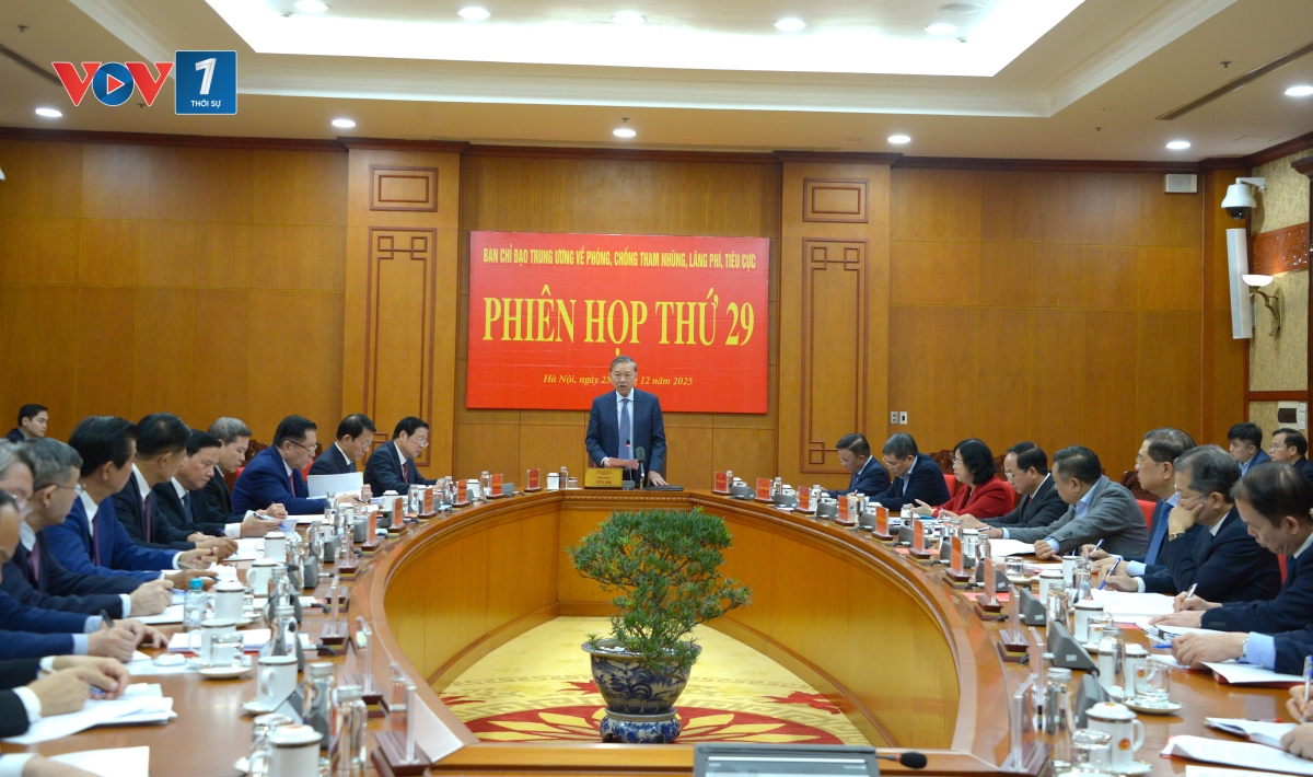 Chiều nay (25/12) tại Trụ sở Trung ương Đảng, dưới sự chủ trì của Tổng Bí thư Tô Lâm, Ban Chỉ đạo Trung ương về phòng, chống tham nhũng, lãng phí, tiêu cực đã họp Phiên thứ 29 để thảo luận, cho ý kiến về kết quả hoạt động năm 2025 và Chương trình công tác năm 2026 của Ban Chỉ đạo.