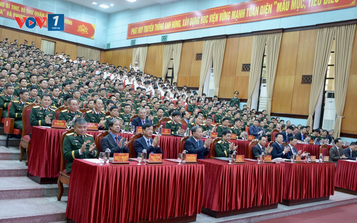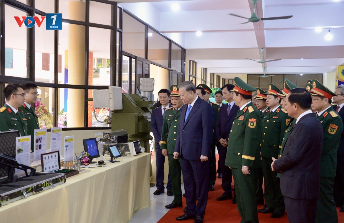 Nói chuyện thân mật với đông đảo cán bộ, giảng viên, nhân viên, học viên, sinh viên, chiến sĩ toàn Học viện, Tổng Bí thư Tô Lâm biểu dương những thành tựu của Học viện Kỹ thuật quân sự trong gần 60 năm qua, nổi bật là Học viện đã đào tạo cho Quân đội và đất nước nguồn nhân lực chất lượng cao thuộc nhiều lĩnh vực, với trên 200 tiến sĩ, 1.500 thạc sĩ, 3.000 kỹ sư quân sự và dân sự; hiện đang tiếp tục đào tạo hơn 6.000 học viên, sinh viên. Riêng trong lĩnh vực Khoa học công nghệ, Học viện đã tích cực tham gia các dự án, chương trình khoa học trọng điểm của Nhà nước, Quân đội, đạt nhiều kết quả tốt với hơn 5.500 bài báo trong nước và hơn 3.200 bài báo quốc tế; có 02 công trình đạt Giải thưởng Hồ Chí Minh; 10 công trình đạt các giải thưởng sáng tạo khoa học công nghệ, kỹ thuật cấp quốc gia…
