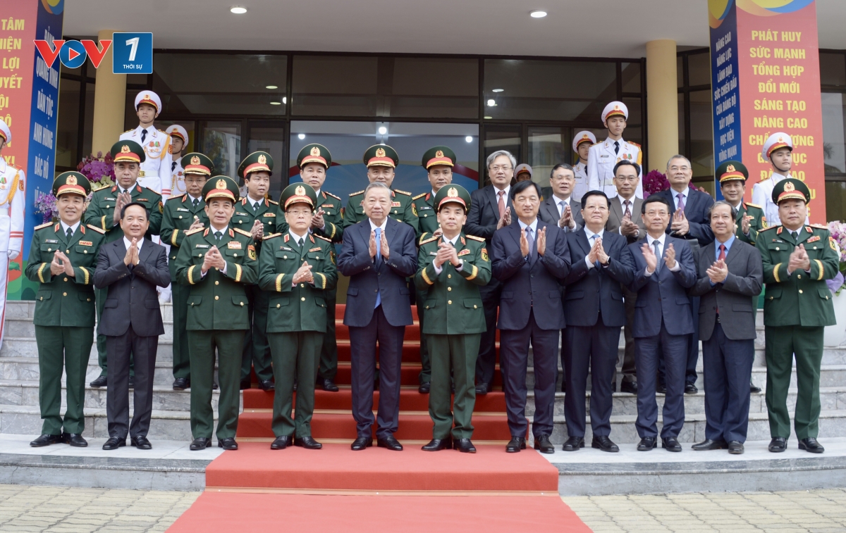 Sau khi phân tích tình hình trong nước và quốc tế với nhiều khó khăn thách thức đan xen, Tổng Bí thư nêu rõ, Nghị quyết Đại hội XIV của Đảng xác định: Xây dựng Quân đội nhân dân cách mạng, chính quy, tinh nhuệ, hiện đại ngay trong nhiệm kỳ 2025-2030, chính vì vậy với sứ mệnh đào tạo nguồn nhân lực chất lượng cao, nghiên cứu phát triển, sản xuất chế thử, chuyển giao công nghệ tiên tiến và hội nhập quốc tế, phát triển khoa học công nghệ quân sự, Tổng Bí thư Tô Lâm đề nghị, Học viện cần tập trung thực hiện 5 định hướng quan trọng, trong đó phải thường xuyên quán triệt sâu sắc, nắm vững quan điểm, đường lối, chủ trương của Đảng, chính sách, pháp luật của Nhà nước về nhiệm vụ quân sự, quốc phòng; quán triệt sâu sắc, triển khai thực hiện nghiêm túc, hiệu quả “2 kiên định, 2 đẩy mạnh, 2 ngăn ngừa”, phương châm “5 vững” và các định hướng chiến lược trong xây dựng Quân đội thời gian tới, tập trung xây dựng Đảng bộ Học viện trong sạch, vững mạnh về chính trị, tư tưởng, đạo đức, tổ chức và cán bộ; mọi cán bộ, đảng viên, quần chúng có bản lĩnh chính trị kiên định, vững vàng, nhận và hoàn thành xuất sắc mọi nhiệm vụ được giao:”Đổi mới mạnh mẽ nội dung, chương trình đào tạo theo hướng hiện đại, thiết thực và liên thông, gắn kết chặt chẽ với thực tiễn và sự phát triển của khoa học công nghệ, đẩy mạnh hội nhập quốc tế, lấy “học viên, sinh viên là trung tâm, nhà trường là nền tảng, giảng viên là động lực”.
