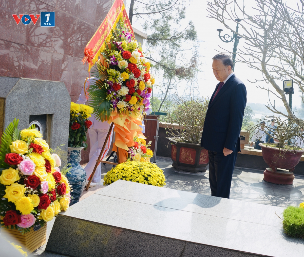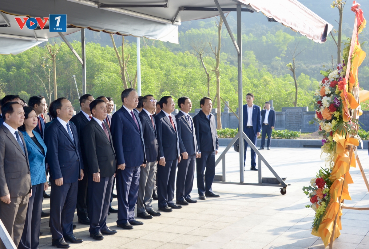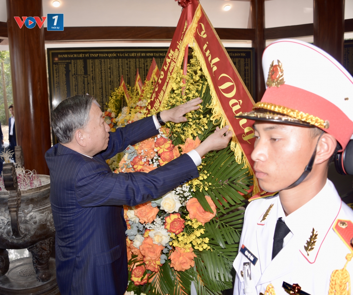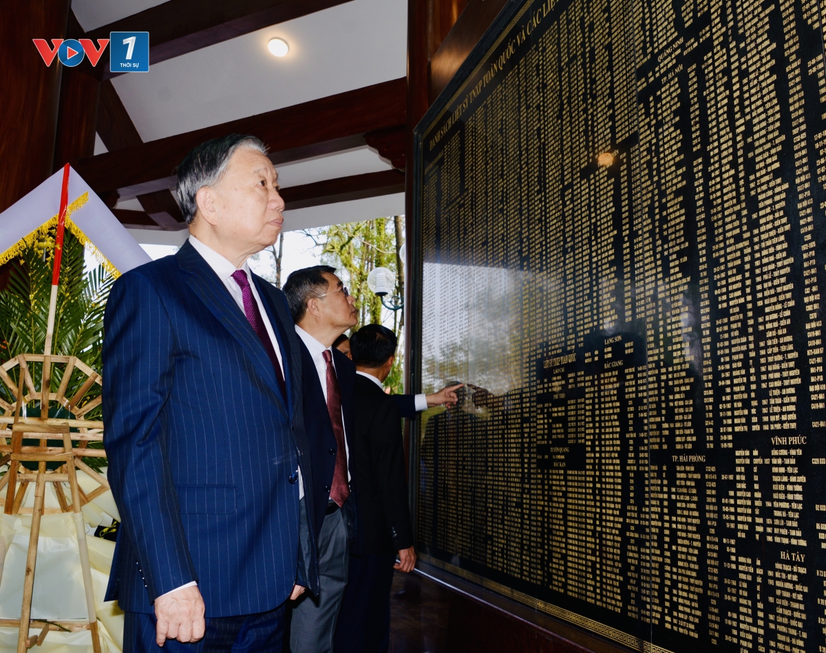 Trước anh linh các anh hùng liệt sĩ, Tổng Bí thư Tô Lâm và Đoàn công tác kính cẩn nghiêng mình, bày tỏ lòng biết ơn vô hạn đối với công lao to lớn của các thế hệ cha anh vì sự nghiệp đấu tranh giải phóng dân tộc và thống nhất đất nước.