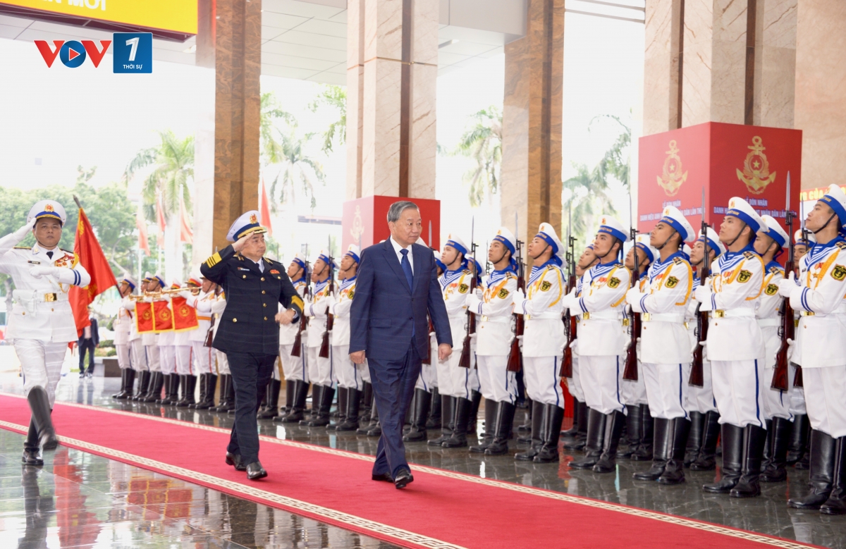 Thay mặt các đồng chí lãnh đạo Đảng, Nhà nước trân trọng trao danh hiệu Anh hùng LLVTND tặng Quân chủng Hải quân, Tổng Bí thư Tô Lâm yêu cầu, thời gian tới Quân chủng Hải quân tập trung quán triệt sâu sắc, nắm vững quan điểm, đường lối, chủ trương của Đảng, chính sách, pháp luật của Nhà nước về quân sự, quốc phòng; trọng tâm là những tư duy, nhận thức mới về Quốc phòng, bảo vệ Tổ quốc theo Nghị quyết Đại hội XIV của Đảng. Chủ động nghiên cứu, nắm chắc tình hình, kịp thời tham mưu, đề xuất với Đảng, Nhà nước, QUTW, BQP những giải pháp “đúng”, “trúng” vừa bảo vệ vững chắc chủ quyền biển, đảo của Tổ quốc, vừa giữ vững môi trường hòa bình, ổn định trên biển để xây dựng, phát triển đất nước.