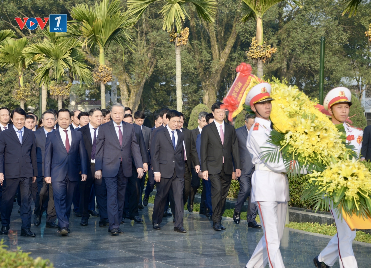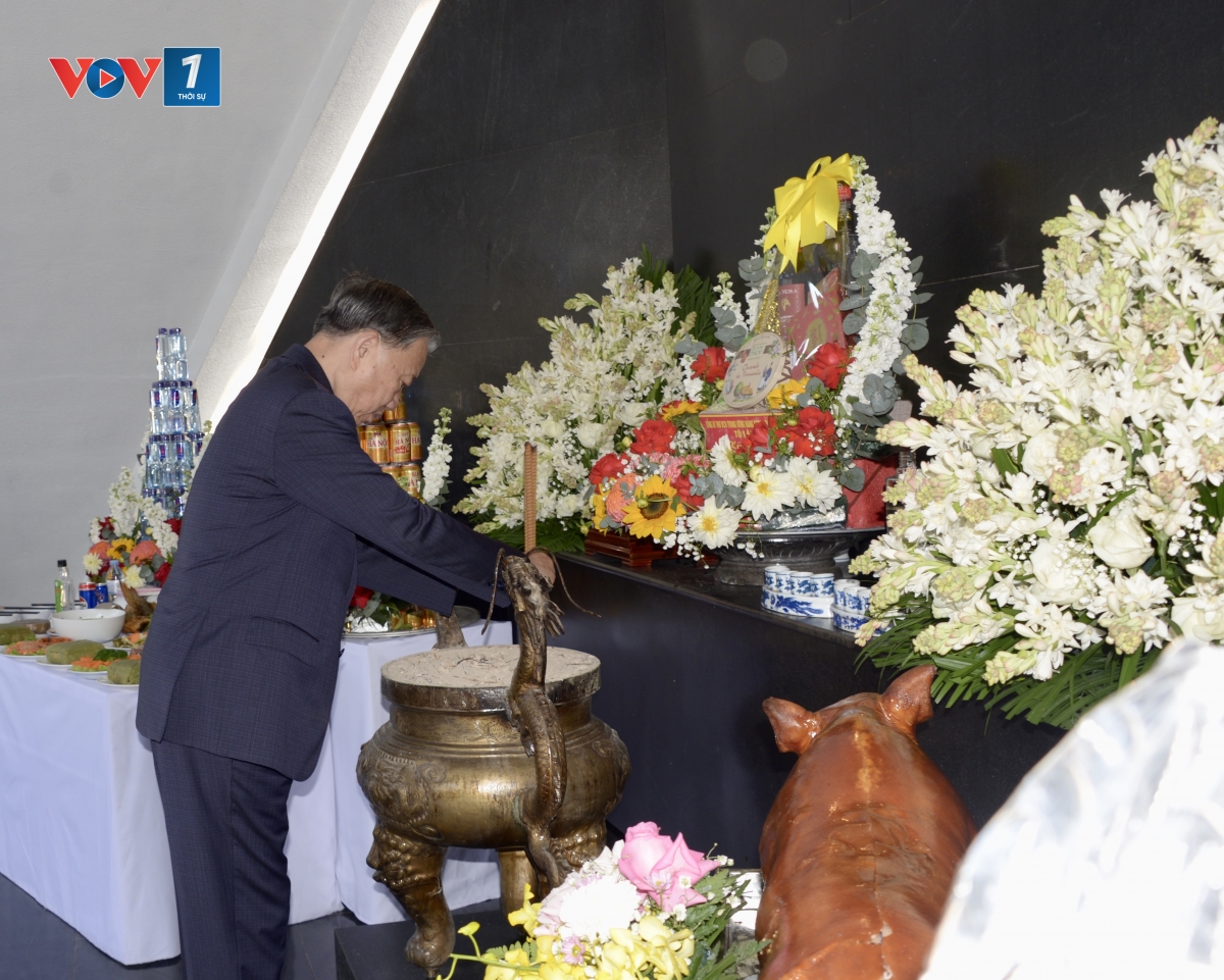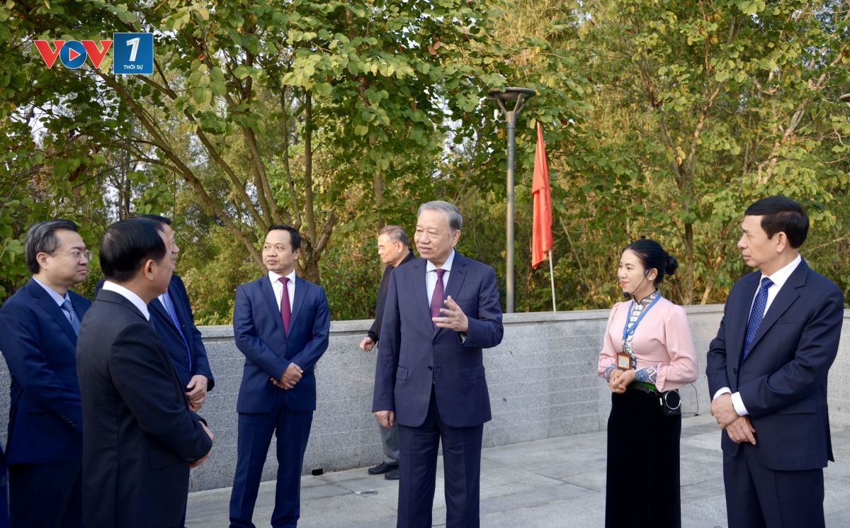 Sáng cùng ngày, Tổng Bí thư Tô Lâm và Đoàn công tác đã tới dâng hoa, dâng hương tưởng niệm Anh hùng liệt sĩ tại Đền thờ Liệt sĩ tại Chiến trường Điện Biên Phủ và Nghĩa trang Liệt sĩ Quốc gia A1. Trong không khí trang nghiêm và xúc động, tại Đền thờ Liệt sĩ tại Chiến trường Điện Biên Phủ, Tổng Bí thư Tô Lâm và Đoàn công tác đã thành kính dâng hoa, dâng hương tưởng nhớ và bày tỏ, Đảng, Nhà nước, nhân dân ta đời đời ghi nhớ công lao to lớn của Chủ tịch Hồ Chí Minh vĩ đại; đời đời ghi nhớ công ơn Đại tướng Võ Nguyên Giáp và sự hy sinh bất tử của các Anh hùng liệt sĩ và đồng bào đã ngã xuống trên chiến trường Điện Biên lịch sử, những người con ưu tú đã hiến dâng trọn đời mình cho non sông đất nước, để Tổ quốc hôm nay được nở hoa trên nền hòa bình.
