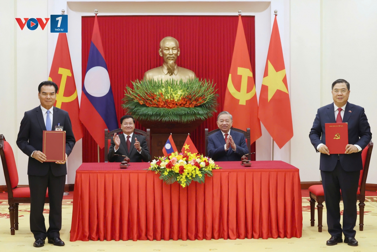 Trong bầu không khí phấn khởi, hòa cùng với niềm vui chung của nhân dân hai nước trước thành công rất tốt đẹp của Đại hội lần thứ XIV của Đảng Cộng sản Việt Nam và Đại hội lần thứ XII của Đảng Nhân dân Cách mạng Lào vừa qua, Tổng Bí thư Tô Lâm và Tổng Bí thư, Chủ tịch nước Lào Thongloun Sisoulith đã thông báo cho nhau về tình hình mỗi Đảng, mỗi nước và những kết quả nổi bật của Đại hội Đại biểu toàn quốc mỗi Đảng. Hai nhà Lãnh đạo đã trao đổi sâu rộng về chủ trương, chính sách lớn trong Nghị quyết Đại hội mỗi Đảng, tình hình mỗi nước, tình hình thế giới và khu vực; phương hướng thúc đẩy hơn nữa mối quan hệ hữu nghị vĩ đại, đoàn kết đặc biệt, hợp tác toàn diện, gắn kết chiến lược Việt Nam – Lào trong giai đoạn mới. Hai bên nhất trí rằng trong bối cảnh tình hình quốc tế, khu vực diễn biến nhanh chóng, phức tạp, khó lường, việc hai Đảng, hai Nhà nước Việt Nam – Lào tiếp tục tăng cường đoàn kết, gắn bó, tin cậy chính trị và phối hợp chặt chẽ càng có ý nghĩa đặc biệt quan trọng.