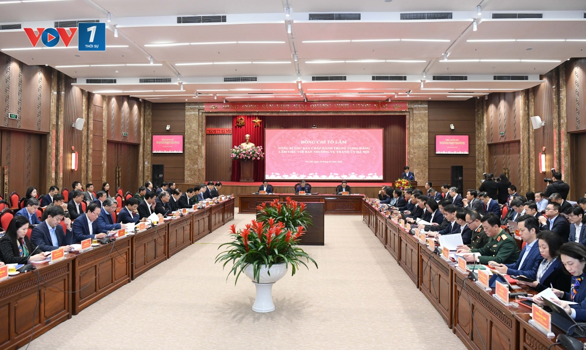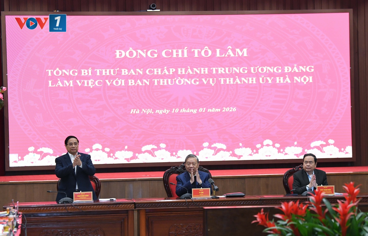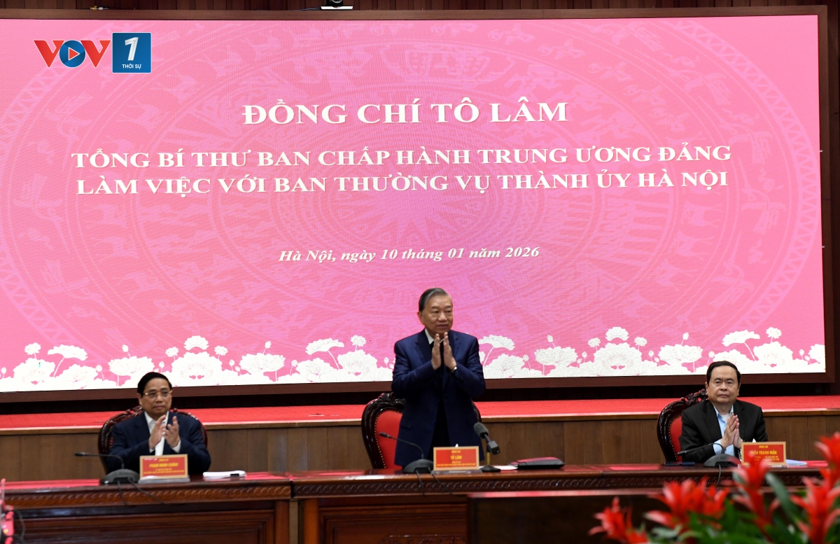 Sáng ngày (10/1), Tổng Bí thư Tô Lâm tới thăm và chủ trì buổi làm việc với Ban Thường vụ Thành ủy Hà Nội về việc xây dựng quy hoạch tổng thể Thủ đô tầm nhìn 100 năm, Nghị quyết thay thế Nghị quyết số 15-NQ/TW ngày 5/5/2022 của Bộ Chính trị và sửa đổi Luật Thủ đô 2024; mô hình phát triển kinh tế - xã hội dựa trên khoa học, công nghệ, đổi mới sáng tạo, chuyển đổi số gắn với giải pháp chiến lược thúc đẩy tăng trưởng 2 con số. Cùng dự có Thủ tướng Chính phủ Phạm Minh Chính và Chủ tịch Quốc hội Trần Thanh Mẫn.