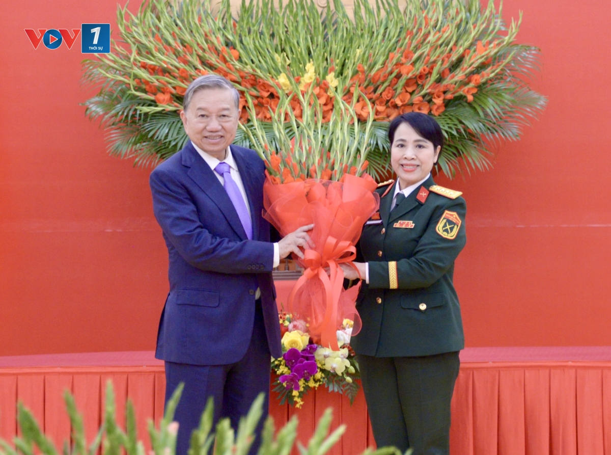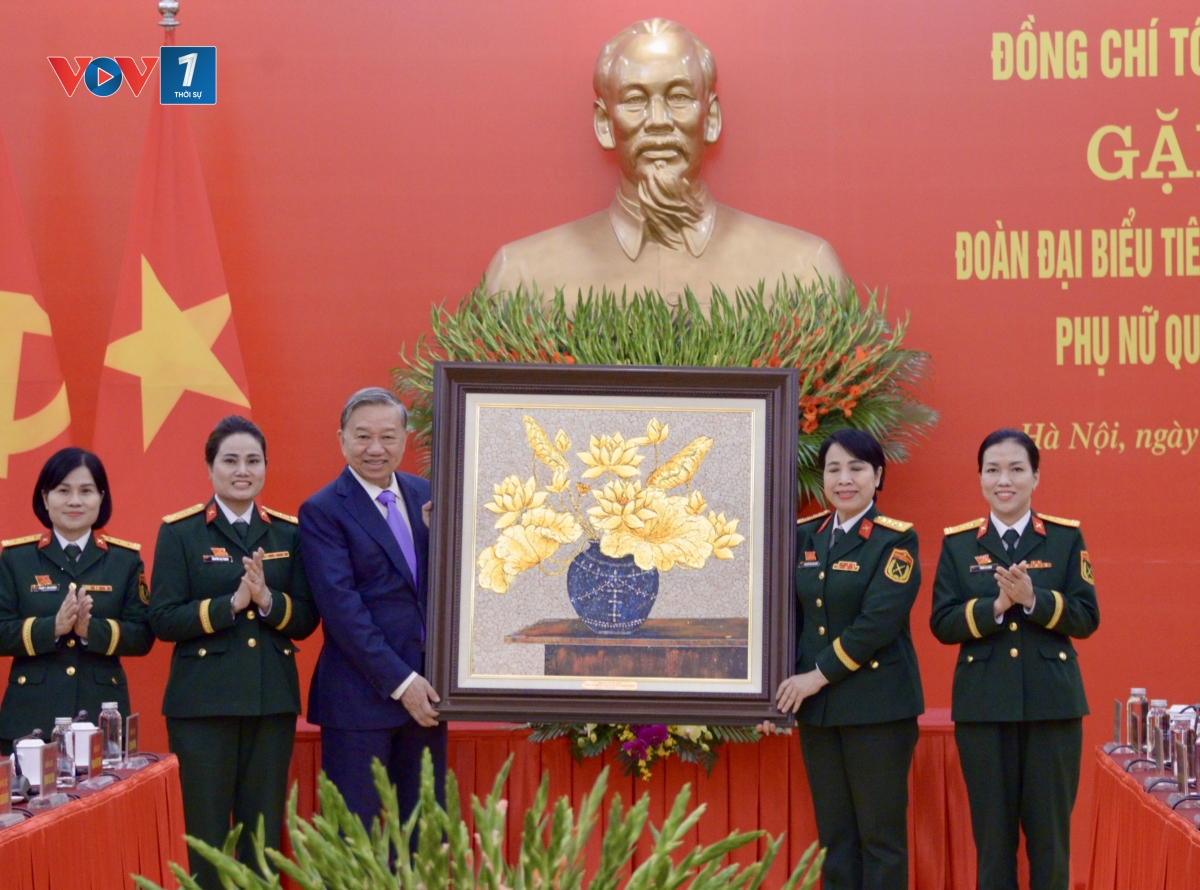 Tổng Bí thư Tô Lâm khẳng định:“Các đồng chí không chỉ hoàn thành xuất sắc nhiệm vụ, mà còn hoàn thành tốt thiên chức của người vợ, người mẹ, là những người giữ lửa hạnh phúc gia đình, là hậu phương vững chắc để người thân yên tâm học tập, công tác. Tấm lòng nhân ái của Phụ nữ Quân đội được lan toả bằng các hành động nghĩa tình trong hoàn cảnh đồng chí, đồng bào gặp hoạn nạn, thiên tai, dịch bệnh, trong các phong trào thi đua “đồng hành cùng chiến sỹ”, “mẹ đỡ đầu”, “bát nước thao trường”... Nhiều chị em sẵn sàng xông pha vào nơi khó khăn, gian khổ, hy sinh, để giúp đỡ, bảo vệ nhân dân, được đồng bào và bạn bè quốc tế ngưỡng mộ, cảm phục, tin yêu… Tất cả những kết quả tốt đẹp đó khẳng định bản lĩnh, tài năng, trí tuệ và khát vọng cống hiến to lớn của Phụ nữ Quân đội trong thời kỳ mới.”