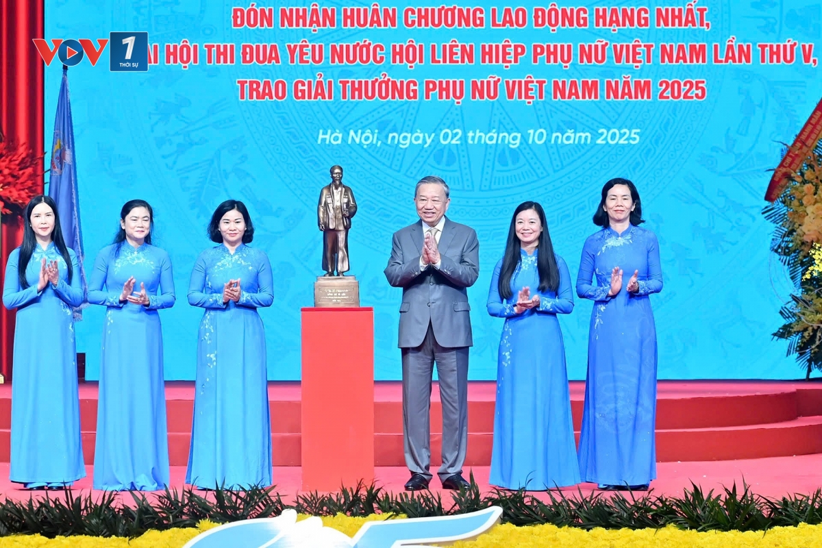 Chiều ngày 2/10 tại Hà Nội, Hội Liên hiệp phụ nữ Việt Nam tổ chức Lễ kỷ niệm 95 năm ngày thành lập đón nhận Huân chương Lao động hạng Nhất và tổ chức Đại hội thi đua yêu nước lần thứ V, tuyên dương và trao Giải thưởng Phụ nữ Việt Nam năm 2025. Tổng Bí thư Tô Lâm tới dự và phát biểu tại buổi lễ, cùng dự có các đồng chí Uỷ viên Bộ Chính trị, Chủ tịch Uỷ ban Trung ương Mặt trận Tổ quốc Việt Nam Đỗ Văn Chiến, Đại tướng Phan Văn Giang, Bộ trưởng Bộ Quốc phòng, Thường trực Tiểu ban Văn kiện Đại hội 14 của Đảng Nguyễn Văn Nên, và hơn 800 đại biểu là các Mẹ Việt Nam anh hùng; Anh hùng Lực lượng vũ trang nhân dân, Anh hùng Lao động, các tập thể, cá nhân điển hình tiên tiến đại diện cho hàng ngàn tấm gương phụ nữ tiêu biểu trong phong trào thi đua của phụ nữ cả nước giai đoạn (2020-2025) và các tập thể, cá nhân đạt Giải thưởng Phụ nữ Việt Nam năm 2025.