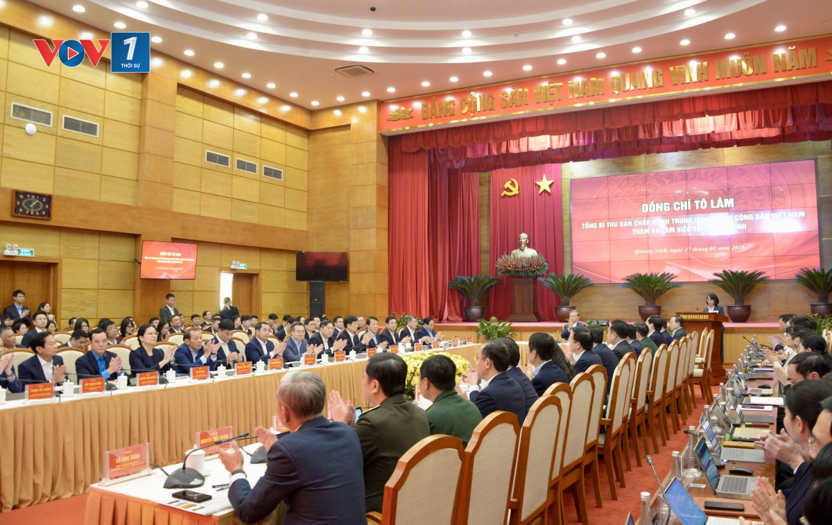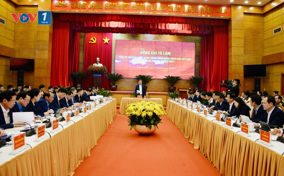 Chiều ngày (27/01) Tổng Bí thư Tô Lâm chủ trì buổi làm việc với Ban chấp hành Đảng bộ tỉnh Quảng Ninh về một số giải pháp thúc đẩy tăng trưởng 2 con số, tình hình phát triển kinh tế xã hội, an ninh quốc phòng, các chính sách an sinh xã hội, việc sắp xếp tổ chức bộ máy trong hệ thống chính trị và tình hình thực hiện các Nghị quyết của Trung ương. Cùng dự có Thủ tướng Phạm Minh Chính, các đồng chí Uỷ viên Bộ Chính trị, Trưởng Ban Tổ chức Trung ương Lê Minh Hưng, Đại tướng Phan Văn Giang, Bộ trưởng Bộ Quốc phòng, Đại tướng Lương Tam Quang, Bộ trưởng Bộ Công an, Trưởng Ban Chính sách và Chiến lược Trung ương Nguyễn Thanh Nghị, Chánh văn phòng Trung ương Đảng Phạm Gia Túc, Bộ trưởng Bộ Nông nghiệp và Môi trường Trần Đức Thắng, Bí thư Thành uỷ Hà Nội Nguyễn Duy Ngọc và lãnh đạo một số Ban, bộ ngành Trung ương.
