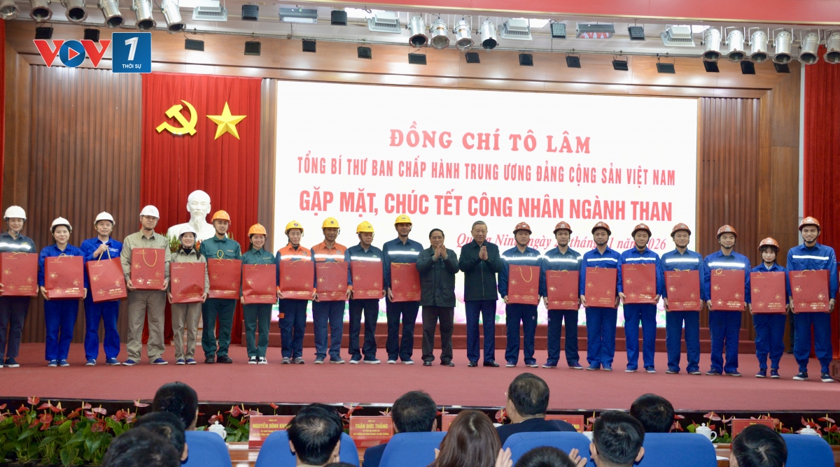 Trong chuyến công tác tại Quảng Ninh, sáng ngày 27/01 nhân dịp chuẩn bị đón tết Nguyên đán Cổ truyền Bính Ngọ 2026, Tổng Bí thư Tô Lâm đã về thăm và chủ trì buổi gặp mặt chúc tết đông đảo công nhân ngành than. Cùng đi có Thủ tướng Phạm Minh Chính, các đồng chí Uỷ viên Bộ Chính trị, Trưởng Ban Tổ chức Trung ương Lê Minh Hưng, Đại tướng Phan Văn Giang, Bộ trưởng Bộ Quốc phòng, Đại tướng Lương Tam Quang, Bộ trưởng Bộ Công an, Trưởng Ban Chính sách và Chiến lược Trung ương Nguyễn Thanh Nghị, Chánh văn phòng Trung ương Đảng Phạm Gia Túc và Bộ trưởng Bộ Nông nghiệp và Môi trường Trần Đức Thắng.