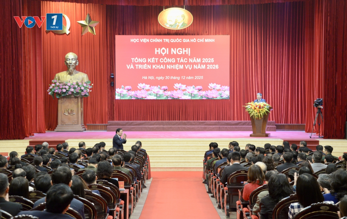 Sáng ngày 30/12, tại Hà Nội, Học viện Chính trị quốc gia Hồ Chí Minh tổ chức Hội nghị tổng kết công tác năm 2025 và triển khai nhiệm vụ năm 2026. Tổng Bí thư Tô Lâm dự và phát biểu chỉ đạo; cùng dự có các đồng chí Ủy viên Bộ Chính trị, Trưởng Ban Nội chính Trung ương Phan Đình Trạc, Giám đốc Học viện Chính trị quốc gia Hồ Chí Minh, Chủ tịch Hội đồng Lý luận Trung ương Nguyễn Xuân Thắng và Bí thư Thành uỷ Hà Nội Nguyễn Duy Ngọc.