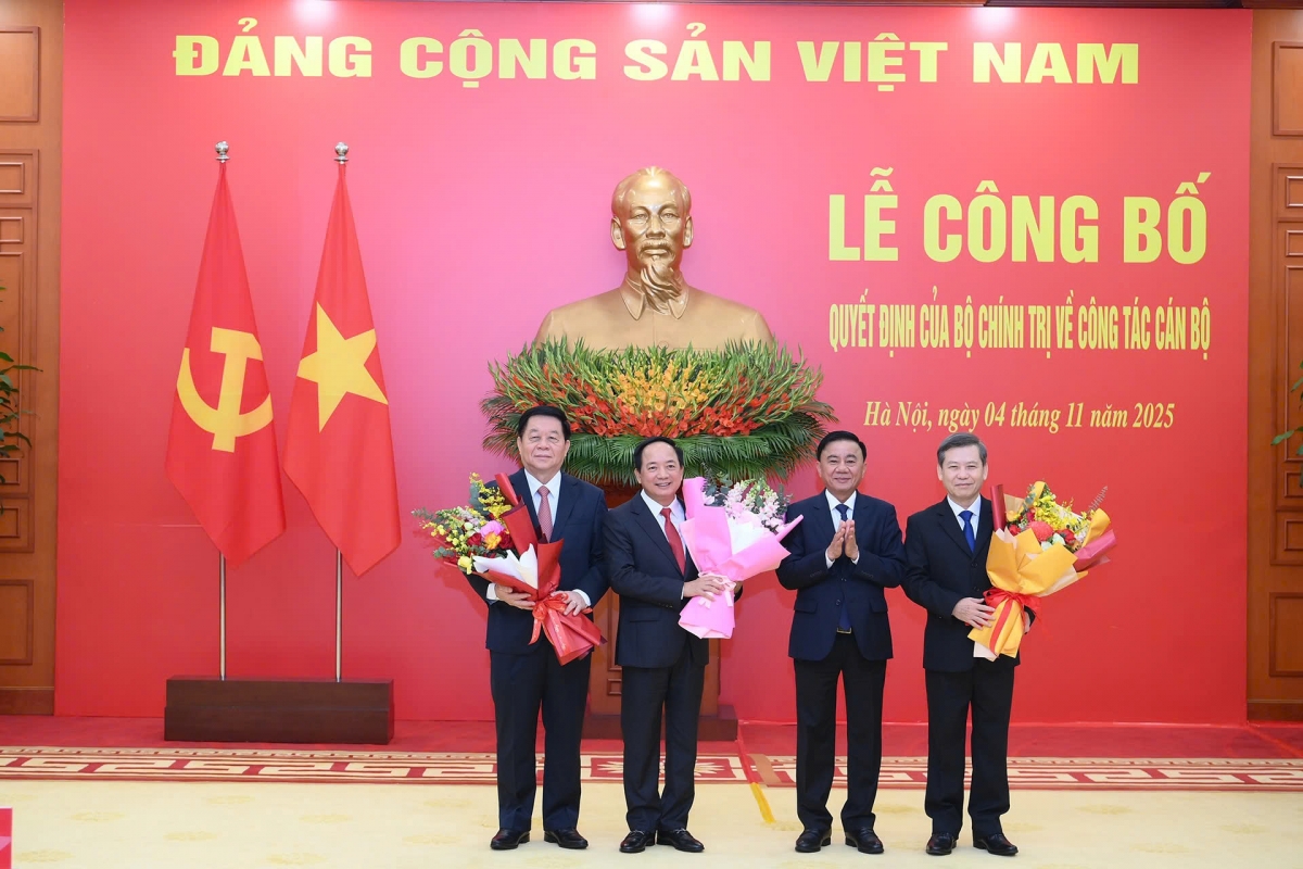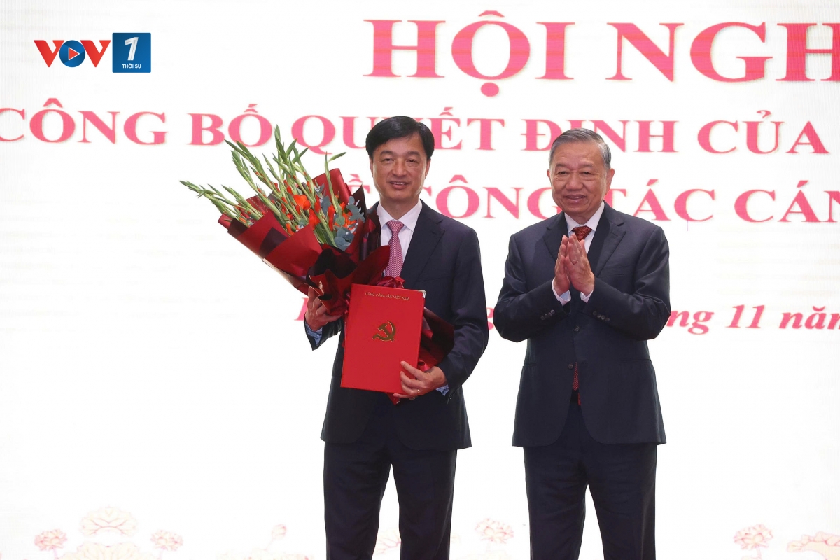 Tại trụ sở Trung ương Đảng, trân trọng trao Quyết định của Bộ Chính trị điều động Đại tướng Trịnh Văn Quyết, Bí trung ương Đảng, Chủ nhiệm Tổng cục Chính trị Quân đội Nhân dân Việt Nam đảm nhiệm chức vụ Trưởng Ban Tuyên giáo và Dân vận Trung ương và trao Quyết định của Bộ Chính trị chỉ định phân công đồng chí Lê Minh Trí, Bí thư Trung ương Đảng, Chánh án Toà án nhân dân Tối cao đảm nhiệm chức vụ Phó Trưởng Ban thường trực Ban Nội chính Trung ương, Tổng Bí thư Tô Lâm nêu rõ, các đồng chí được Bộ Chính trị phân công tin tưởng giao nhiệm vụ ngày hôm nay đều tiêu biểu về phẩm chất chính trị, được đào tạo trưởng thành trên nhiều vị trí công tác, có năng lực, uy tín và nhiều thành tích trong lĩnh vực được giao, đáp ứng được yêu cầu nhiệm vụ trong tình hình mới. Đặc biệt trong thời gian vừa qua các đồng chí đã cùng Bộ Chính trị, Ban Bí thư chỉ đạo thực hiện thắng lợi nhiệm vụ chính trị, kinh tế xã hội của Đất nước góp phần quan trọng đưa Đất nước ta bước vào giai đoạn phát triển mới. Khẳng định Bộ Chính trị rất tin tưởng giao nhiệm vụ mới cho các đồng chí, Tổng Bí thư bày tỏ mong muốn các đồng chí được giao nhiệm vụ ngày hôm nay, nhanh chóng nắm bắt công việc tại nơi làm việc mới để cùng Đảng, Nhà nước thực hiện thắng lợi các mục tiêu Nghị quyết Đại hội 13 của Đảng tiến tới tổ chức thành công Đại hội Đảng toàn quốc lần thứ 14: