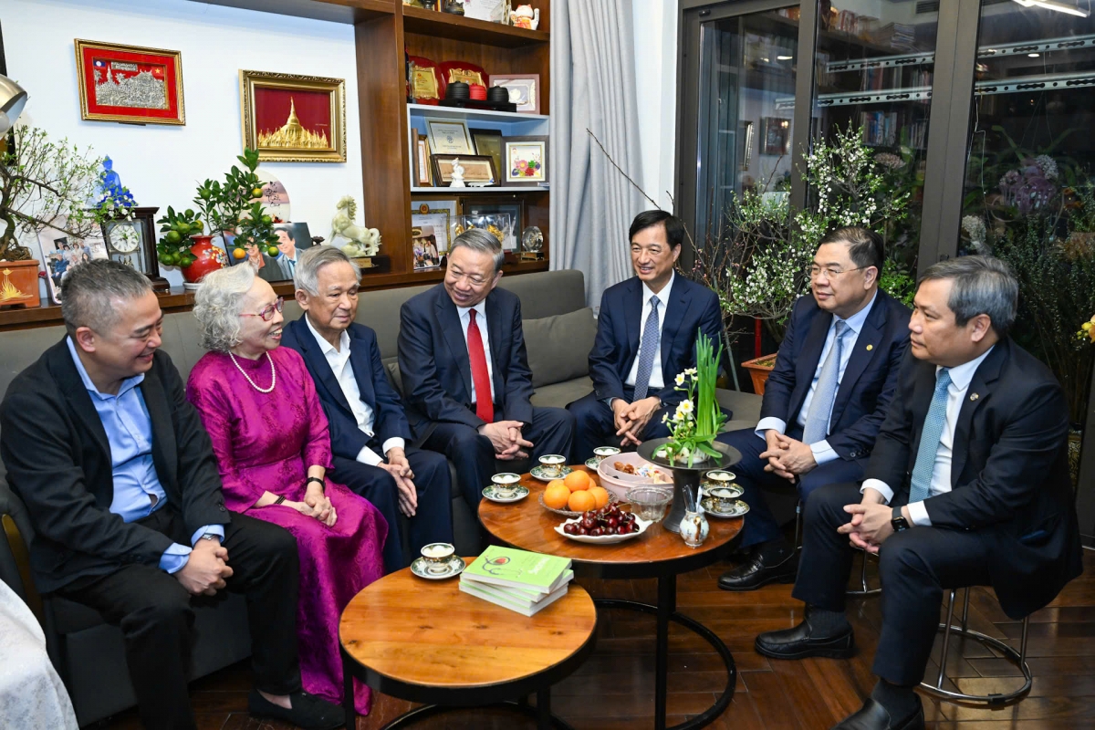 Tối cùng ngày, Tổng Bí thư Tô Lâm cũng đã tới thăm và chúc tết gia đình GS-TS Nhà giáo Nguyễn Lân Dũng và PGS-TS Thầy thuốc nhân dân, Đại tá Nguyễn Kim Nữ Hiếu, Công dân Thủ đô ưu tú năm 2025, nguyên phó Giám đốc Bệnh viện Trung ương Quân đội 108.