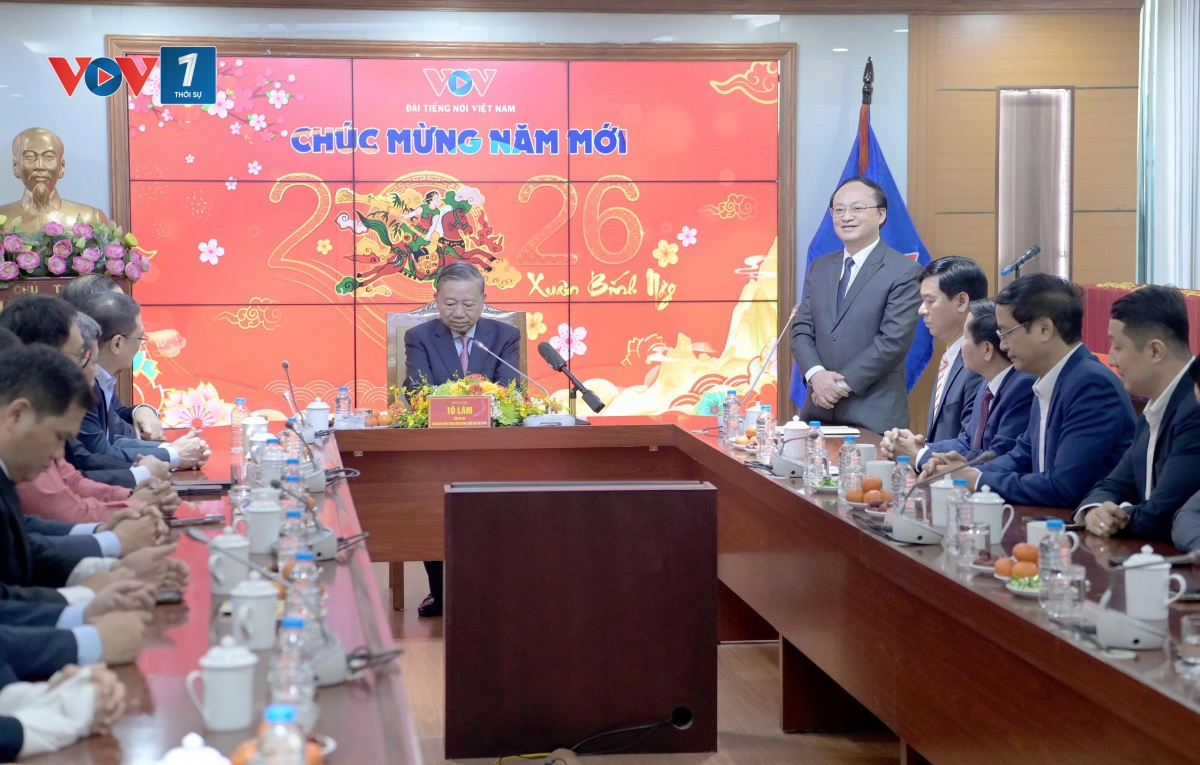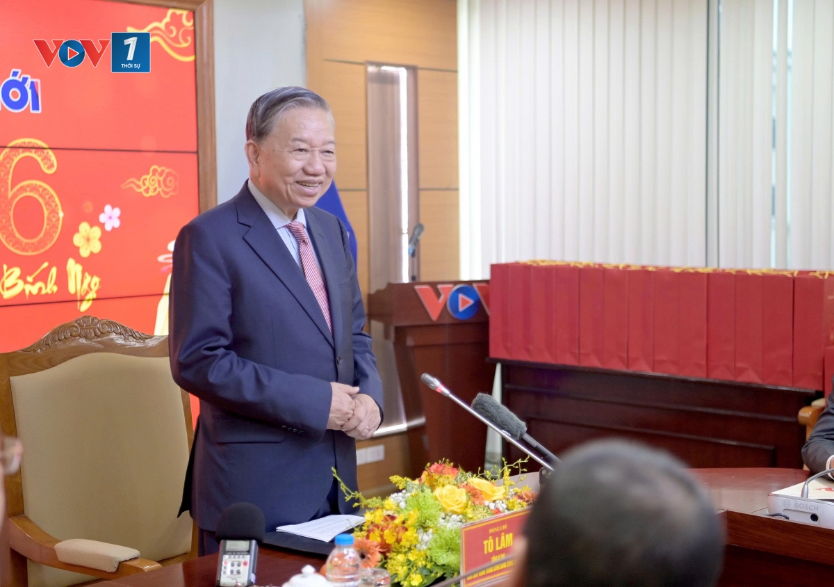 Chúc tết lãnh đạo chủ chốt và tập thể cán bộ công nhân viên, kỹ thuật viên Đài TNVN, Tổng Bí thư Tô Lâm bày tỏ rất xúc động và chia sẻ cùng cán bộ công nhân viên, kỹ thuật viên Đài TNVN những người đang canh trời, giữ sóng, giữ nhịp thông tin cho đất nước, nhận định từ những thiết bị thô sơ thời chiến đến hệ thống phát thanh hiện đại hôm nay, Đài TNVN đã không ngừng lớn mạnh. Sóng của Đài phủ khắp đất liền, vươn ra Biển Đông, đến với bà con ngư dân, với cán bộ, chiến sĩ trên các đảo tiền tiêu, với đồng bào vùng sâu, vùng xa, biên giới. Khi bão lũ ập đến, khi điện lưới gián đoạn, khi nhiều loại hình truyền thông khác bị mất tín hiệu, thì tiếng nói phát thanh vẫn vang lên rõ ràng, kịp thời, chính xác. Ở những “vùng lõm" thông tin, nơi hạ tầng còn hạn chế, Đài chính là cầu nối tin cậy giữa chính quyền và nhân dân:”Trong thời khắc thiêng liêng chuẩn bị đón Tết Nguyên đán, mỗi một gia đình đang sum vầy, trên dọc các tuyến đường rực rỡ sắc xuân. Tôi rất là xúc động đến thăm, động viên cán bộ, công nhân viên, các kỹ thuật viên, phát thanh viên người lao động Đài Tiếng nói Việt Nam, cùng chia sẻ với các đồng chí, những người đang canh trời giữ sóng, giữ nhịp thông tin cho đất nước, cho quốc gia, kịp thời đến với từng người dân, từng địa bàn, từng khu vực, không chỗ nào không có tiếng nói Viet Nam cả.” Tổng Bí thư Tô Lâm chia sẻ.