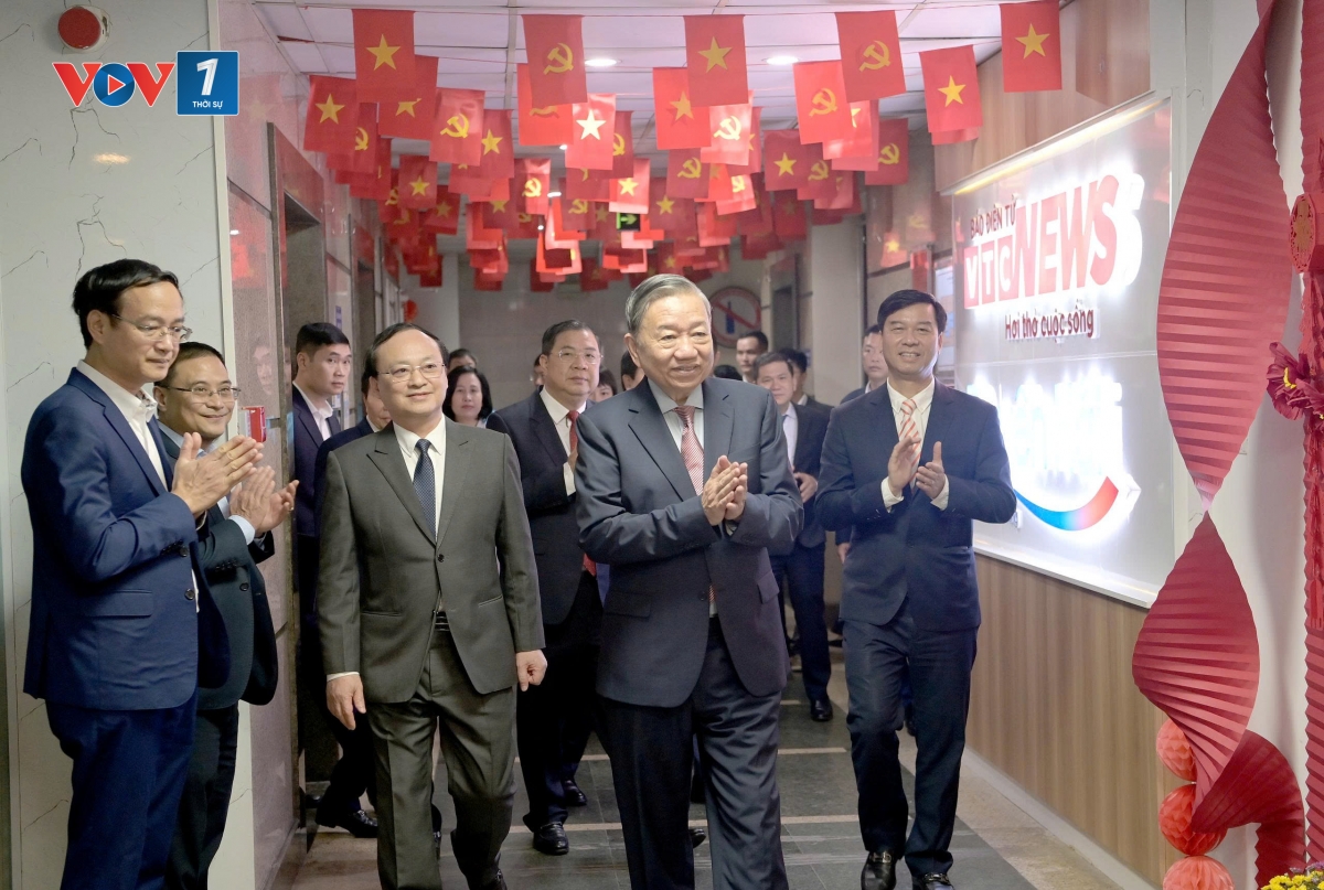 Trước đó, trong sáng nay Tổng Bí thư Tô Lâm đã tới thăm và chúc tết cán bộ công nhân viên kỹ thuật viên Đài THVN. Tổng Bí thư Tô Lâm đã tham quan khu vực sản xuất chương trình, trường quay, trung tâm phát sóng, nghe báo cáo về kết quả công tác, lắng nghe chia sẻ của cán bộ, phóng viên. Theo đó, trong năm qua, công tác thông tin, tuyên truyền của Đài THVN đã được triển khai an toàn, hiệu quả, đáp ứng yêu cầu nhiệm vụ chính trị, mang theo hơi thở cuộc sống, đáp ứng yêu cầu của nhân dân. Trong bối cảnh nhiều thách thức, đời sống của cán bộ, phóng viên và người lao động tiếp tục được cải thiện.