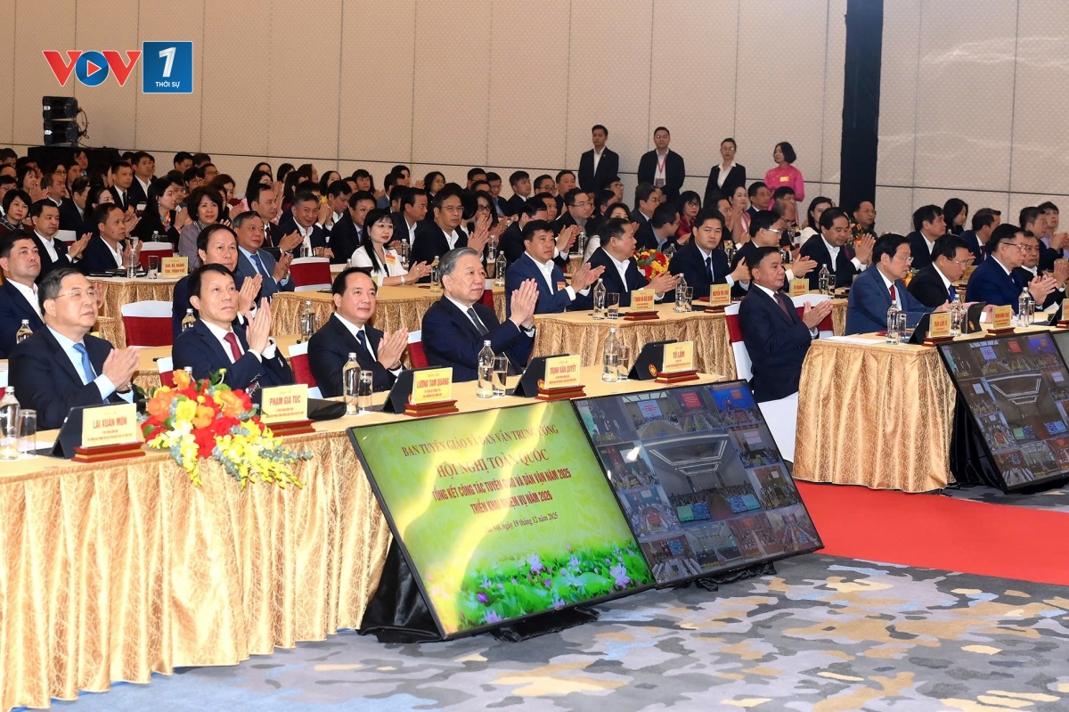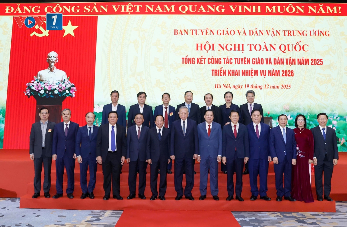 Sáng ngày 19/12 tại Hà Nội, Ban Tuyên giáo và Dân vận Trung ương tổ chức Hội nghị toàn quốc trực tuyến đến các điểm cầu của các tỉnh ủy, thành ủy và điểm cầu các xã, phường, đặc khu trên cả nước tổng kết công tác Tuyên giáo và Dân vận năm 2025, triển khai nhiệm vụ năm 2026. Tổng Bí thư Tô Lâm tới dự và phát biểu chỉ đạo Hội nghị, cùng dự có các đồng chí Ủy viên Bộ Chính trị, Thường trực Ban Bí thư Trần Cẩm Tú; Trưởng ban Nội chính Trung ương Phan Đình Trạc, , Giám đốc Học viện Chính trị quốc gia Hồ Chí Minh, Chủ tịch Hội đồng Lý luận Trung ương Nguyễn Xuân Thắng; Đại tướng Nguyễn Trọng Nghĩa, Chủ nhiệm Tổng cục Chính trị Quân đội nhân dân Việt Nam và Đại tướng Lương Tam Quang, Bộ trưởng Bộ Công an.