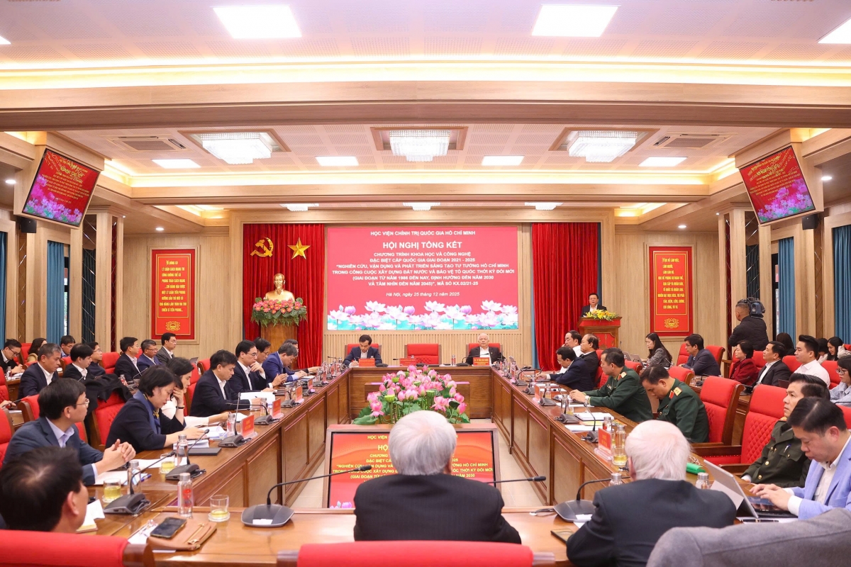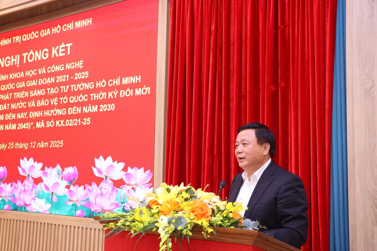 Báo cáo tóm tắt đánh giá kết quả thực hiện Chương trình KX.02/21-25, PGS.TS Nguyễn Mạnh Hùng, Phó giám đốc Học viện Chính trị quốc gia Hồ Chí Minh, Phó Chủ tịch Hội đồng lý luận Trung ương, Phó Chủ nhiệm Chương trình cho biết: Chương trình khoa học và công nghệ đặc biệt cấp quốc gia giai đoạn 2021-2025 “Nghiên cứu, vận dụng và phát triển sáng tạo tư tưởng Hồ Chí Minh trong công cuộc xây dựng đất nước và bảo vệ Tổ quốc thời kỳ đổi mới (giai đoạn từ năm 1986 đến nay, định hướng đến năm 2030 và tầm nhìn đến năm 2045)”, mã số KX.02/21-25 được Thủ tướng Chính phủ phê duyệt tại Quyết định số 1183, ngày 07/10/2022 và triển khai thực hiện theo Quyết định số 06 của Bộ trưởng Bộ Khoa học và Công nghệ về việc phê duyệt Khung Chương trình. Mục tiêu của Chương trình nghiên cứu toàn diện, hệ thống, sâu sắc nội dung, tầm vóc, giá trị, ý nghĩa của tư tưởng Hồ Chí Minh và vận dụng, phát triển tư tưởng của Người trong công cuộc xây dựng, phát triển đất nước và bảo vệ Tổ quốc từ năm 1986 đến nay, đề xuất quan điểm, phương hướng, giải pháp, kiến nghị tiếp tục vận dụng và phát triển sáng tạo tư tưởng Hồ Chí Minh đến năm 2030, tầm nhìn đến năm 2045.