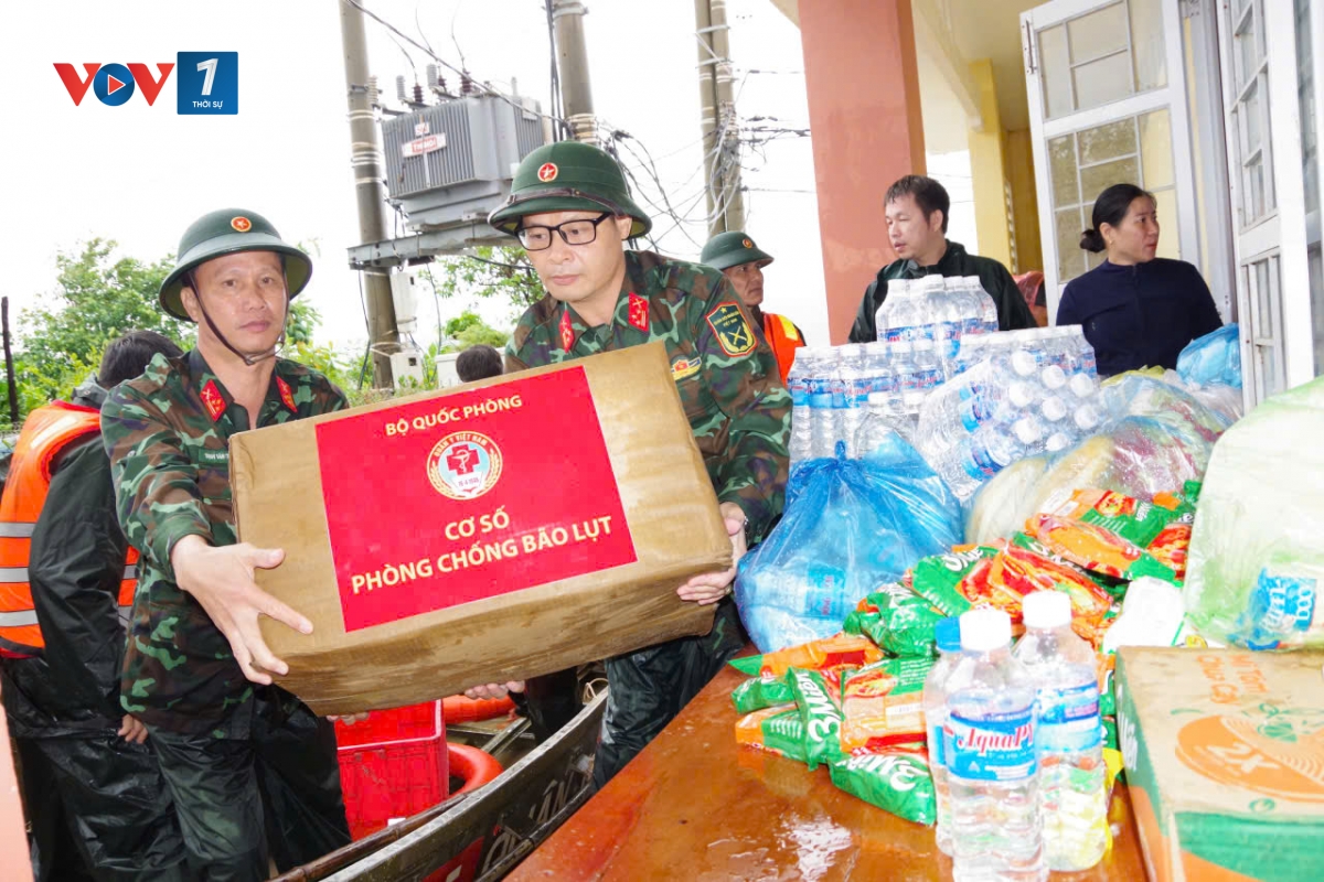 Ngày 19/11, Bộ Quốc phòng đã điều động trên 6.200 lượt cán bộ chiến sỹ và 129 ô tô, 36 xuồng, 2 Flycam cùng chó nghiệp vụ hỗ trợ di dời 5.750 hộ dân với hơn 20 nghìn người ở các tỉnh Trung bộ đến nơi an toàn, đắp và gia cố được 300m bờ đập, vệ sinh 150.000m2 bùn đất các khu vực nước rút, phân luồng giao thông và canh gác cảnh báo nguy hiểm.