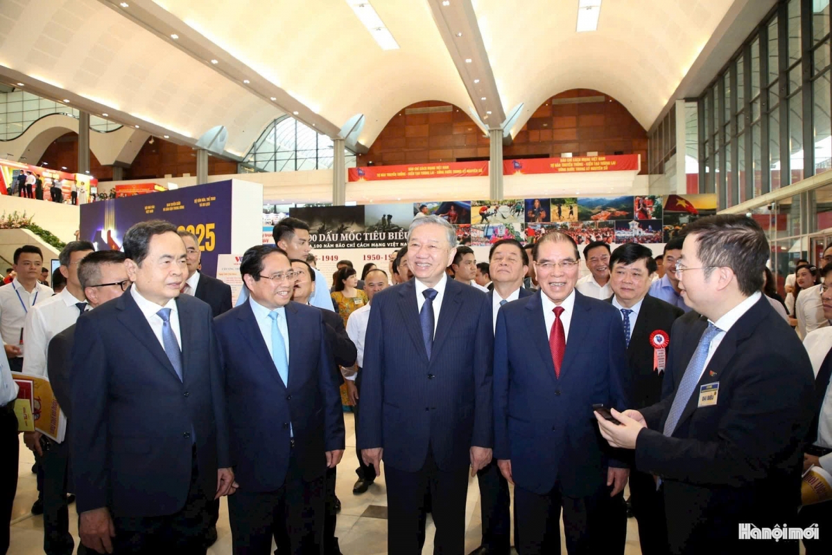 VOV1 - Sáng 21-6, Tổng Bí thư Tô Lâm cùng các đồng chí lãnh đạo Đảng, Nhà nước, bộ, ban, ngành và thành phố Hà Nội đã tham quan Hội Báo toàn quốc và dự lễ kỷ niệm 100 năm Ngày Báo chí Cách mạng Việt Nam tại Trung tâm Hội nghị Quốc gia (số 1 Đại lộ Thăng Long, Thủ đô Hà Nội).
