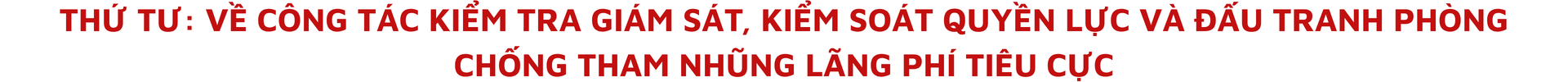 Công tác kiểm tra giám sát, kiểm soát quyền lực phòng, chống tham nhũng, lãng phí, tiêu cực trong thời gian tới phải được triển khai với quyết tâm chính trị cao, hành động kiên quyết, kiên trì, thường xuyên và liên tục. Xử lý nghiêm minh mọi vi phạm, bảo đảm nguyên tắc "không có vùng cấm, không có ngoại lệ", nhưng đồng thời phải quán triệt sâu sắc tính nhân văn, thượng tôn pháp luật và mục tiêu phát triển. Trong đó, phải thiết lập và vận hành hiệu quả các cơ chế bảo vệ cán bộ năng động, sáng tạo, dám nghĩ, dám làm, dám chịu trách nhiệm vì lợi ích chung. Phân định rõ ranh giới giữa sai phạm do động cơ vụ lợi với sai sót trong quá trình thử nghiệm, đổi mới.