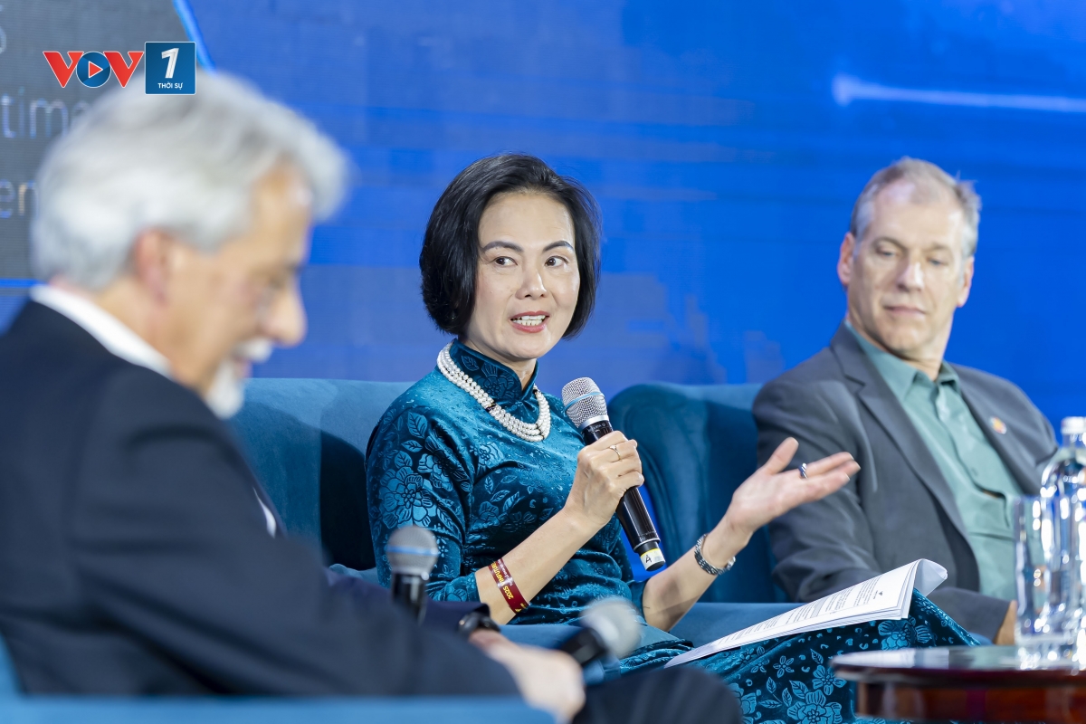 Nhấn mạnh vai trò của giáo dục và sự hợp tác đa bên trong thúc đẩy các giải pháp công nghệ, đổi mới sáng tạo vì tương lai bền vững, GS. Nguyễn Thục Quyên- Giáo sư Khoa Hóa - Hóa sinh tại Đại học California, Santa Barbara (Hoa Kỳ) cho rằng: “Giữ thế giới xanh, tạo ra cuộc sống tốt đẹp hơn cho tương lai là điều rất quan trọng. Nhưng khó nhất là làm sao thực hiện được. Điều cần thiết là giáo dục người dân, đồng thời phải có sự hợp tác giữa doanh nghiệp, nhà khoa học và chính quyền – trong phát triển điện, xử lý ô nhiễm hay tìm kiếm các giải pháp xanh trong tương lai.”
