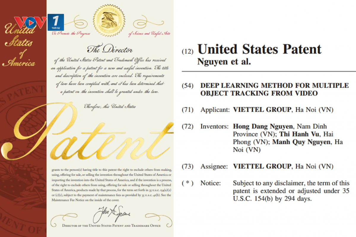 Trung tâm Dịch vụ dữ liệu và Trí tuệ nhân tạo Viettel (Viettel AI), thành viên của Tập đoàn Công nghiệp - Viễn thông Quân đội Viettel vừa chính thức nhận bằng sáng chế đầu tiên do Cơ quan Sáng chế và Nhãn hiệu Hoa Kỳ (USPTO) cấp cho phương pháp theo vết đa đối tượng từ video sử dụng công nghệ trí tuệ nhân tạo.