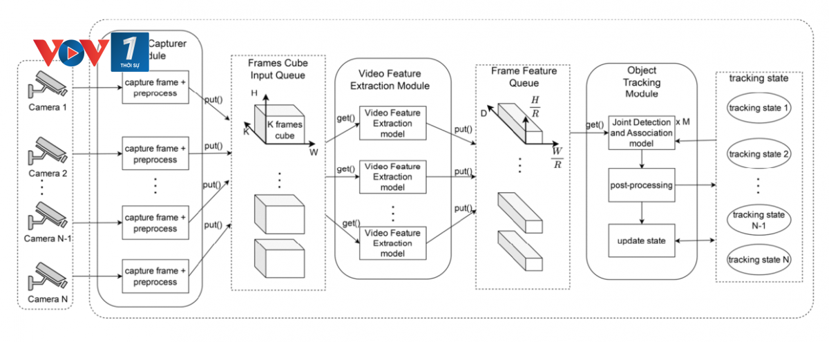 Xuất phát từ thực trạng này, Viettel AI đã chọn hướng tiếp cận khác biệt. Nhóm nghiên cứu tự thiết kế một mô hình AI theo vết đa đối tượng có khả năng huấn luyện đầu cuối (end-to-end) hoàn toàn mới, giúp hệ thống học và xử lý toàn bộ quá trình theo dõi đối tượng trong một kiến trúc thống nhất thay vì xử lý từng bước rời rạc, giúp tăng độ ổn định, giảm nhầm lẫn định danh, tối ưu thời gian xử lý và phù hợp triển khai trong các điều kiện thực tế phức tạp.