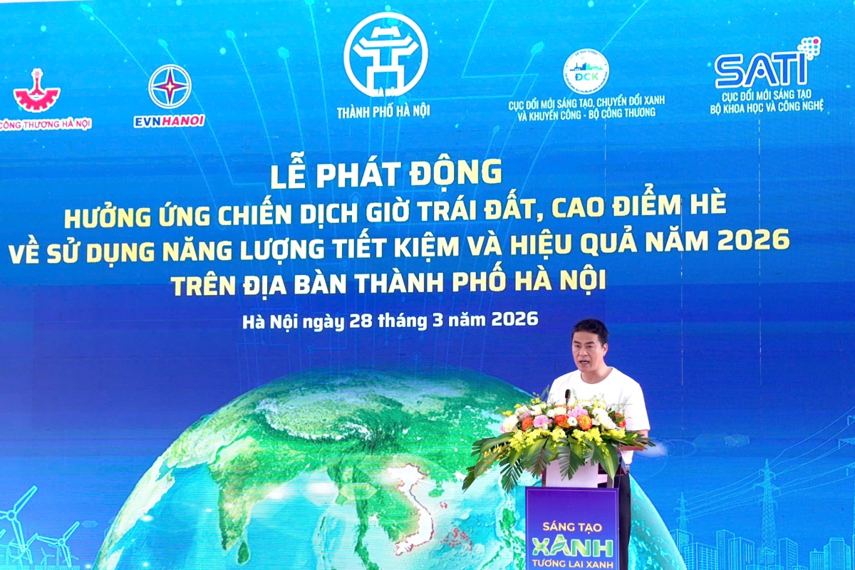 Chiến dịch Giờ trái đất năm 2026 sẽ tiếp tục lan toả mạnh mẽ và góp phần thiết thực vào việc đảm bảo an ninh năng lượng và thúc đẩy phát triển xanh chuyển đổi xanh của đất nước. Đó là thông điệp thật ngắn gọn được ông Đặng Hải Dũng - Phó Cục Trưởng Cục Đổi mới sáng tạo, Chuyển đổi xanh và Khuyến công, Bộ Công Thương - đơn vị tổ chức sự kiện Giờ trái đất tại Việt Nam từ năm 2009 đến nay. Và nghi thức phát động hưởng ứng chiến dịch Giờ Trái đất, cao điểm hè về sử dụng năng lượng tiết kiệm và hiệu quả với thông điệp “Sáng tạo xanh - Tương lai xanh” đã được thực hiện bởi đại diện Sở Công Thương Hà Nội, Cục Đổi mới sáng tạo, Chuyển đổi xanh và Khuyến công - Bộ Công Thương, Cục Đổi mới sáng tạo - Bộ Khoa học và Công nghệ và Tập đoàn Điện lực Việt Nam, Tổng công ty Điện lực thành phố Hà Nội.