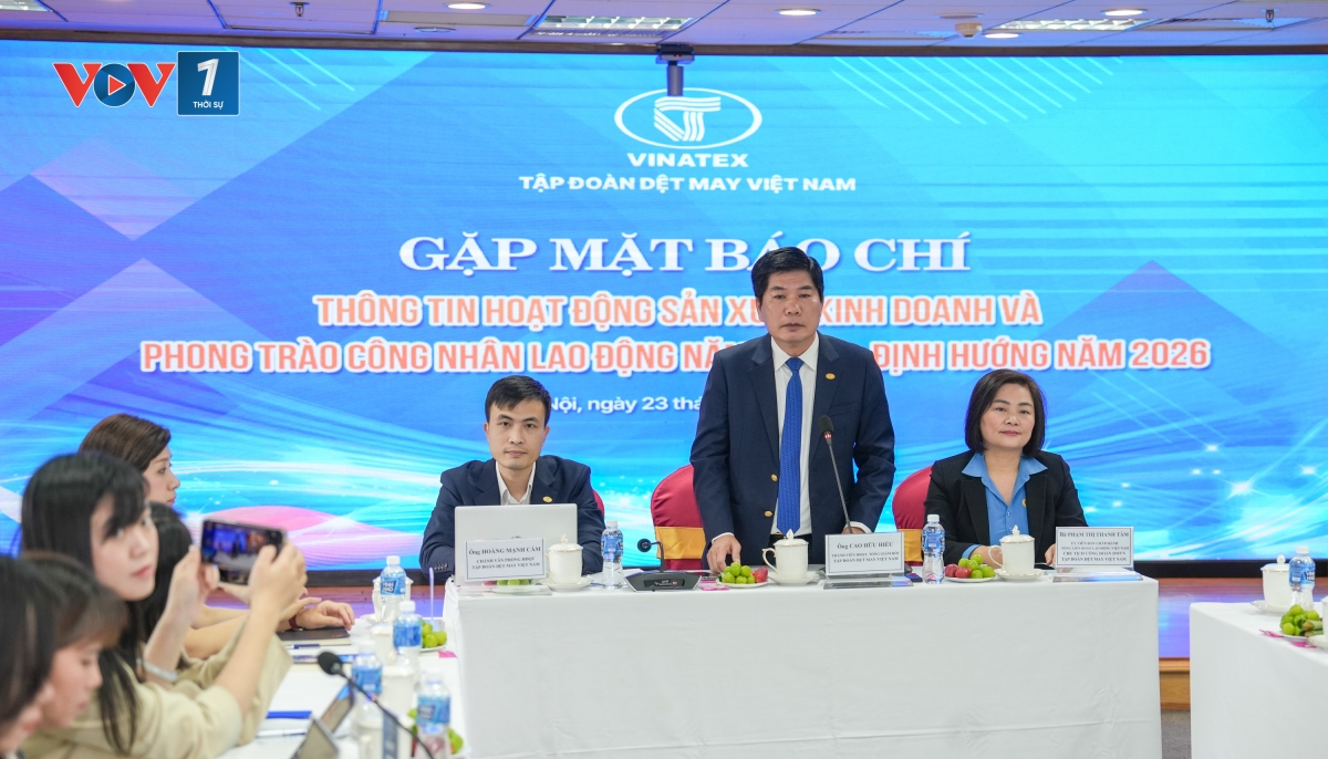 Sáng 23-12, tại Hà Nội, Tập đoàn Dệt may Việt Nam (Vinatex) tổ chức thông tin về kết quả hoạt động sản xuất kinh doanh, phong trào công nhân lao động năm 2025 và các hoạt động chăm lo Tết Nguyên đán Bính Ngọ 2026 cho người lao động.