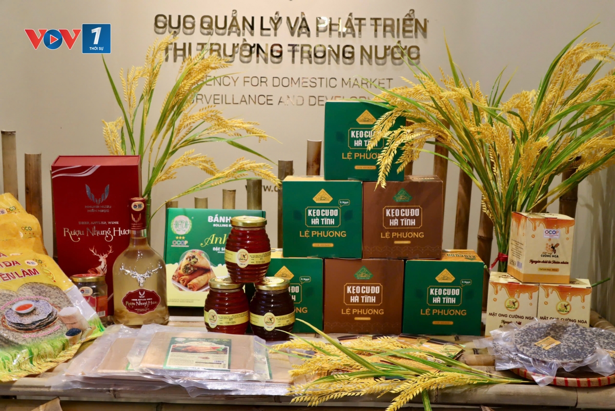 Tại không gian trưng bày, nhiều sản phẩm đặc trưng của Hà Tĩnh được giới thiệu tới người tiêu dùng như cu đơ Lệ Phương, nước mắm Luận Nghiệp, trầm hương Tâm Thiên Hương, bánh đa vừng Nguyên Lâm, mật ong Cường Nga Hương Sơn…