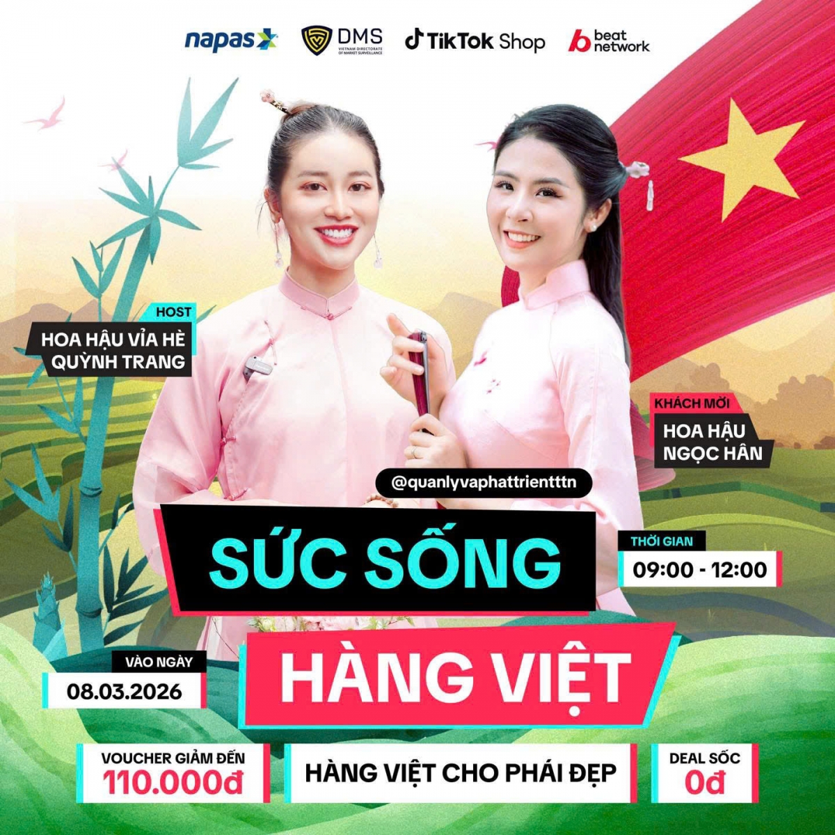 Điểm nhấn của chương trình là phiên livestream diễn ra từ 9h00 đến 12h00 ngày 8/3/2026 trên kênh TikTok “Hello Vietnam”. Chương trình có sự tham gia của lãnh đạo Cục Quản lý và Phát triển thị trường trong nước, Ngọc Hân - Hoa hậu Việt Nam 2010 và nhà sáng tạo nội dung Quỳnh Trang (kênh “Hoa hậu vỉa hè”). Sự đồng hành của các nhân vật có sức ảnh hưởng được kỳ vọng sẽ góp phần gia tăng hiệu ứng lan tỏa, đặc biệt đối với nhóm người tiêu dùng trẻ trên môi trường số.